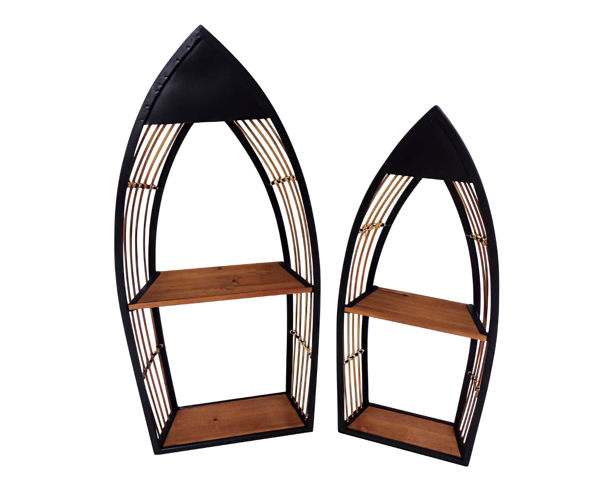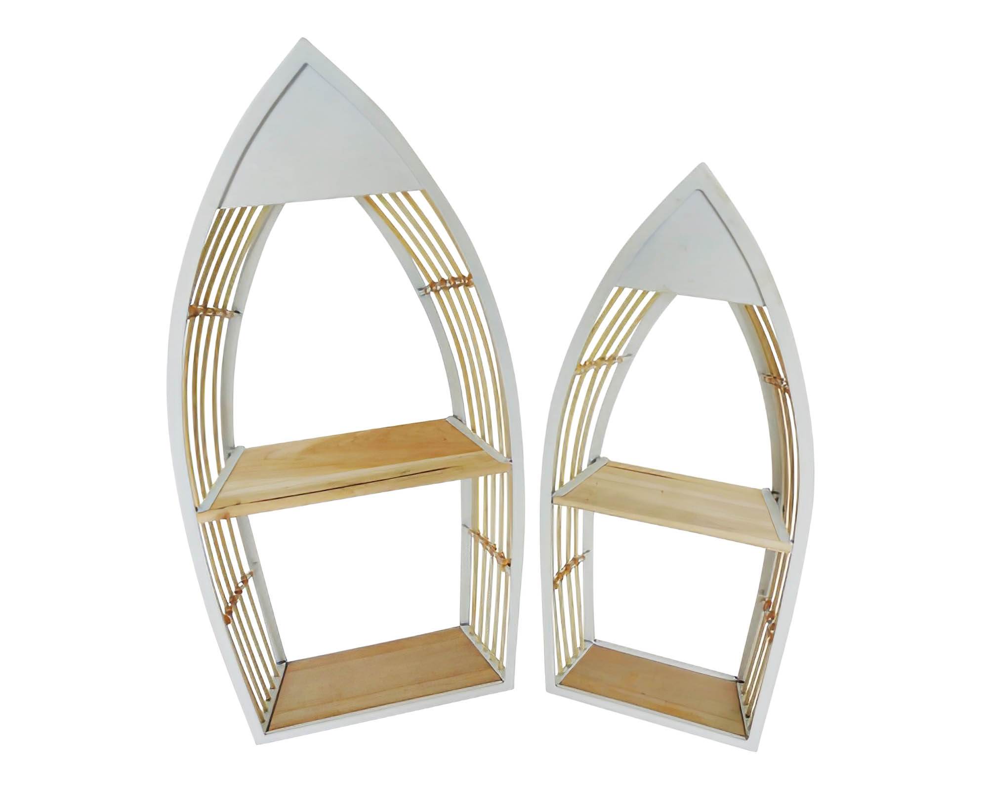 Set 2 Pz Mensola Barca con 2 Ripiani Assortito in Legno, Bamboo, Rattan e Ferro