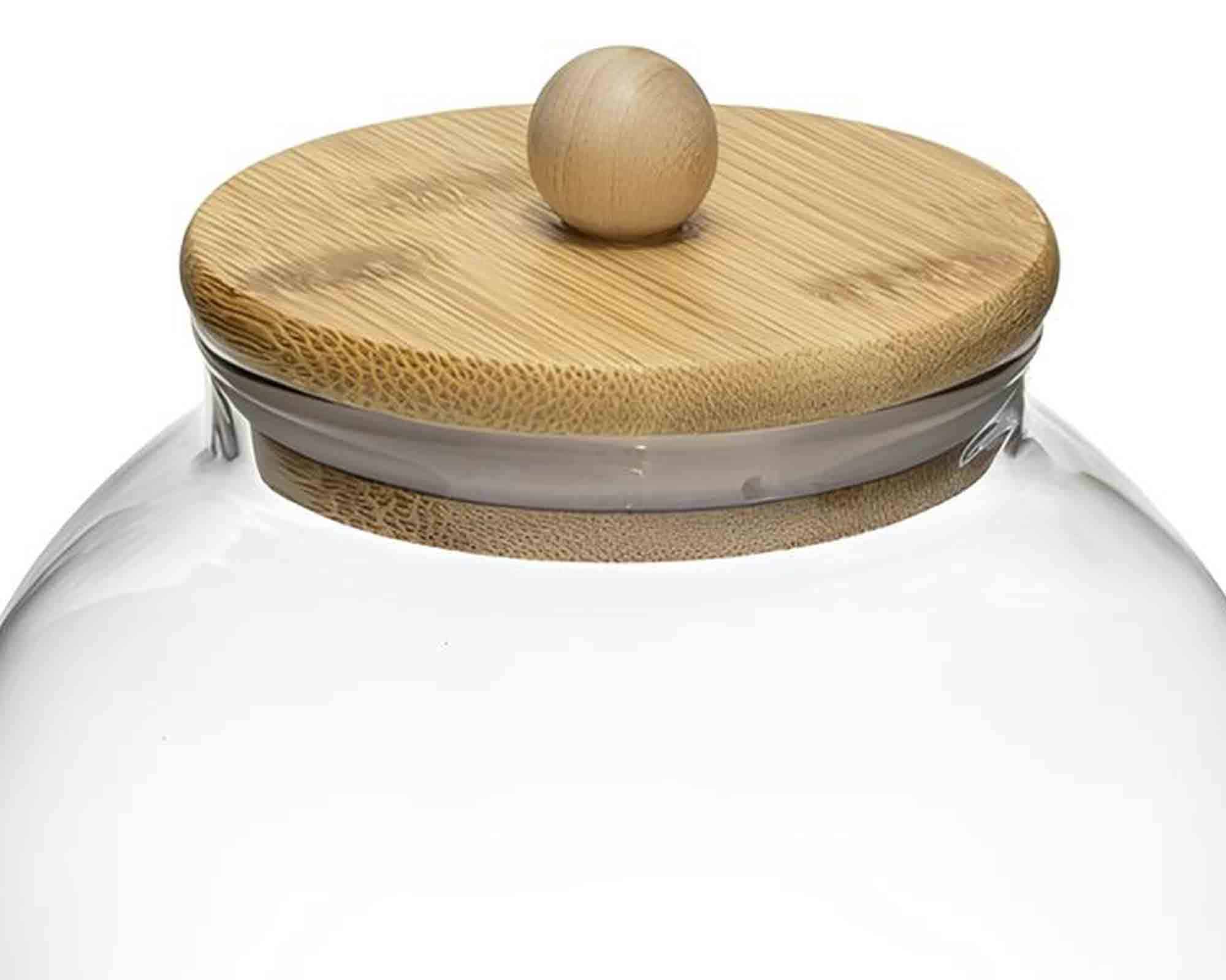 Barattolo Guarnizione con Coperchio D14x16cm in Vetro e Legno
