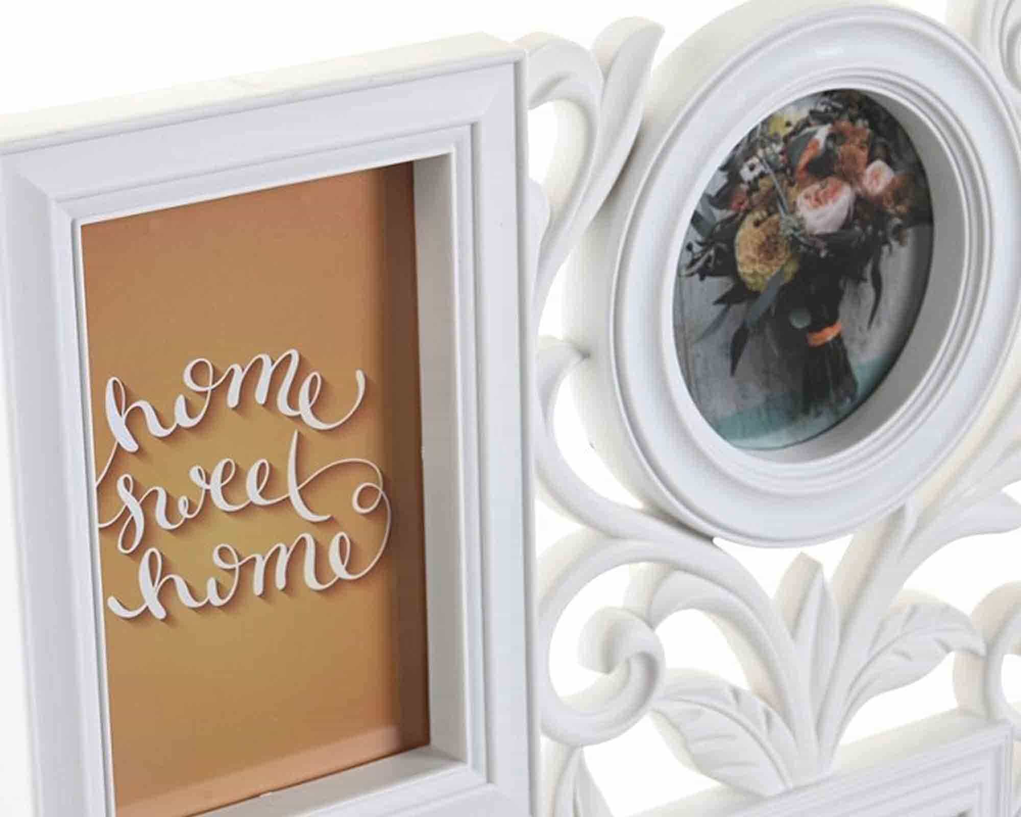 Il colore bianco opaco si adatta facilmente a qualsiasi tipo di arredamento, donando un tocco di luminosità e sobrietà. La disposizione dei riquadri, studiata con cura, consente di esporre i tuoi ricordi più belli in modo originale e raffinato.
