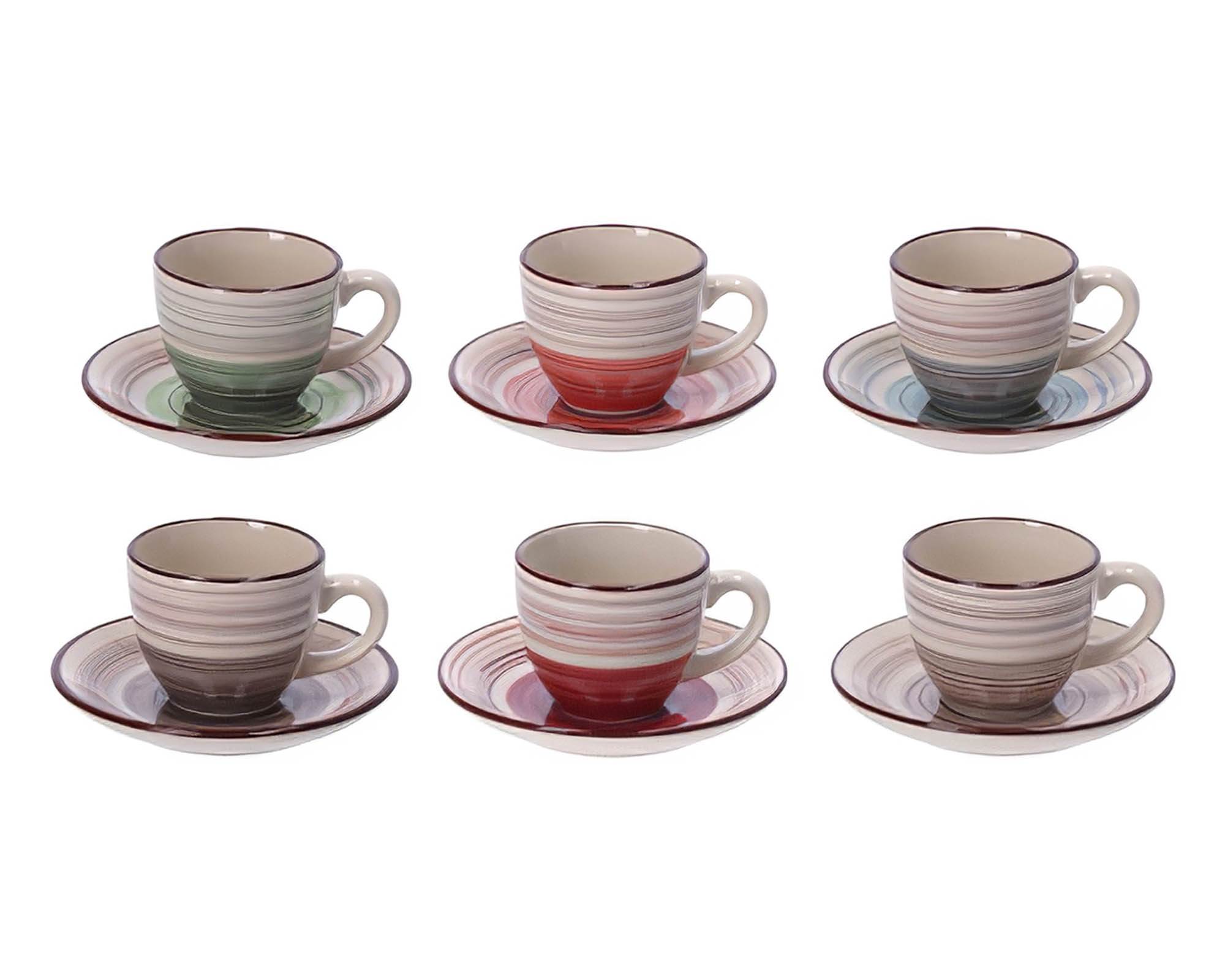 Il set include sei tazze da caffè con relative piattini, perfette per gustare il tuo espresso mattutino o per condividere un momento di relax con i tuoi cari. Ogni tazza è progettata ergonomicamente per una presa comoda e sicura, mentre i piattini offrono uno spazio sufficiente per accomodare biscotti o dolcetti per accompagnare il caffè.