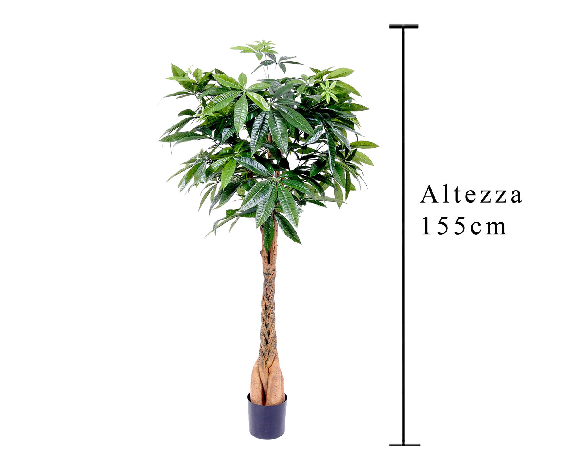 Pachira con Vaso D70x155cm Pianta Artificiale in Plastica e Poliestere
