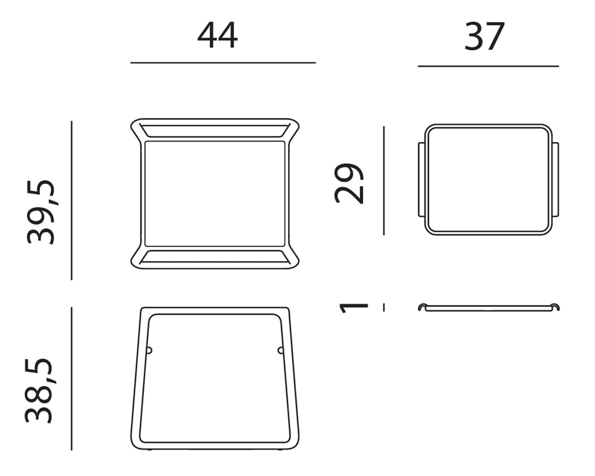 - Tavolino: 44×39,5×38,5h