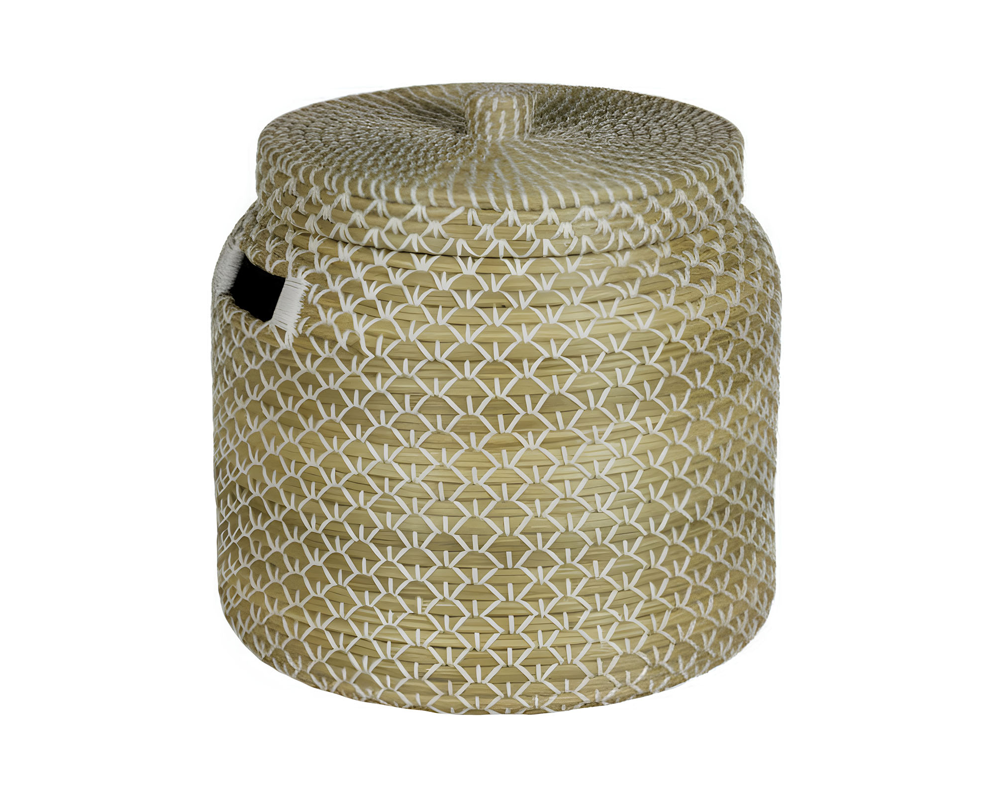 Cesta con Coperchio Naturale D29x32cm in Seagrass