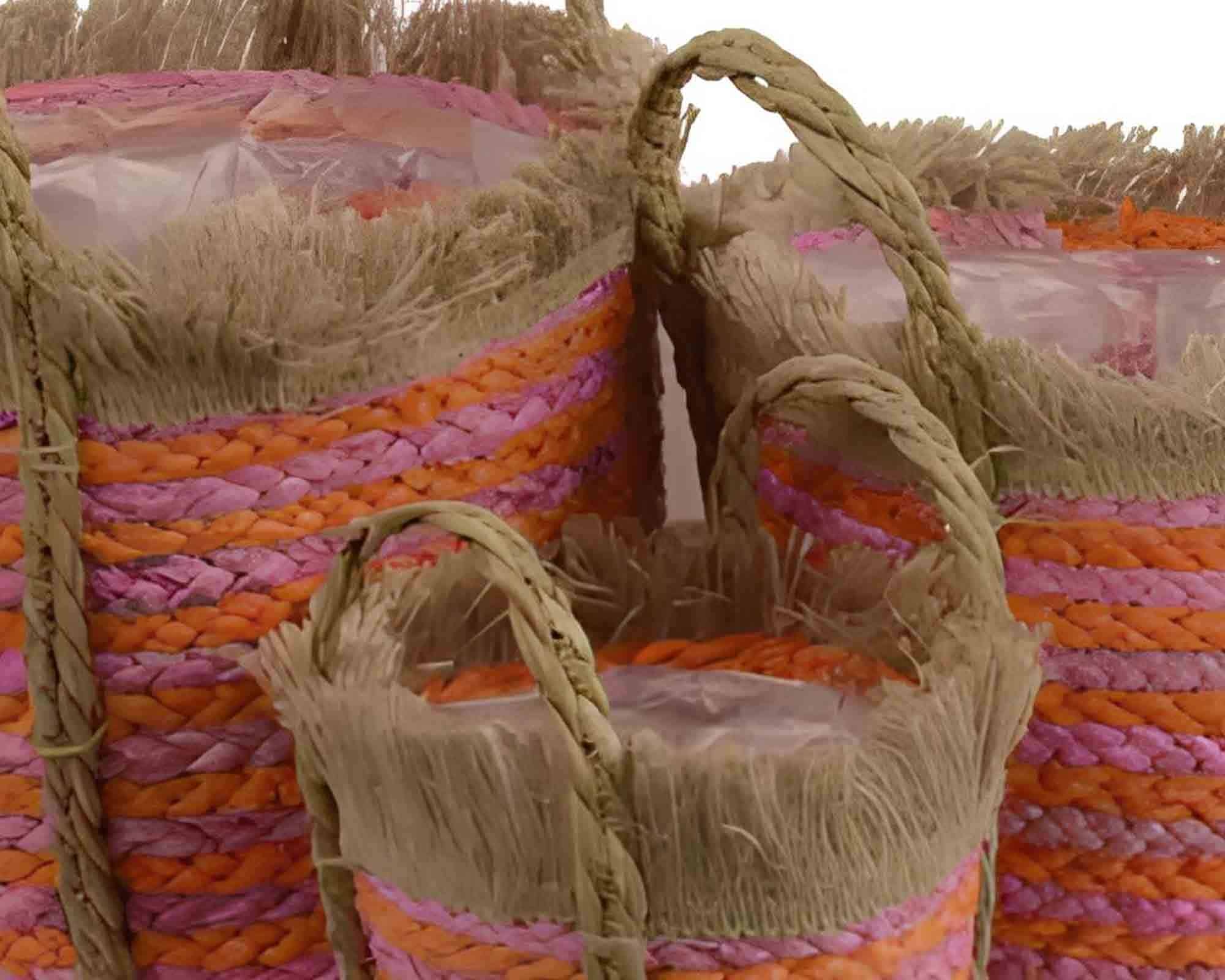 Realizzata con materiali naturali, questa cesta si distingue per resistenza, leggerezza e versatilità, risultando perfetta per contenere tessuti, oggetti, accessori o come elemento decorativo. Le finiture naturali la rendono adatta a interni dallo stile boho, rustico, nordico o contemporaneo.