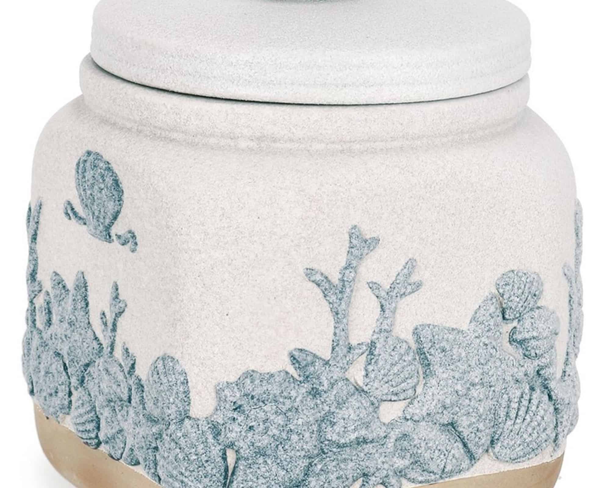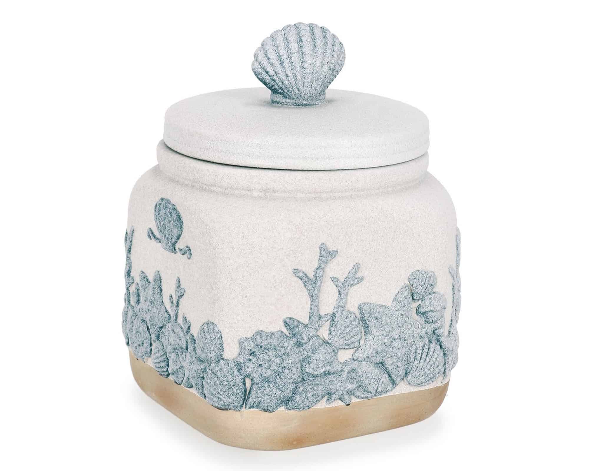 Contenitore Quadrato con Conchiglie Bianco e Blu 13x13x16,5cm in Porcellana – Bizzotto