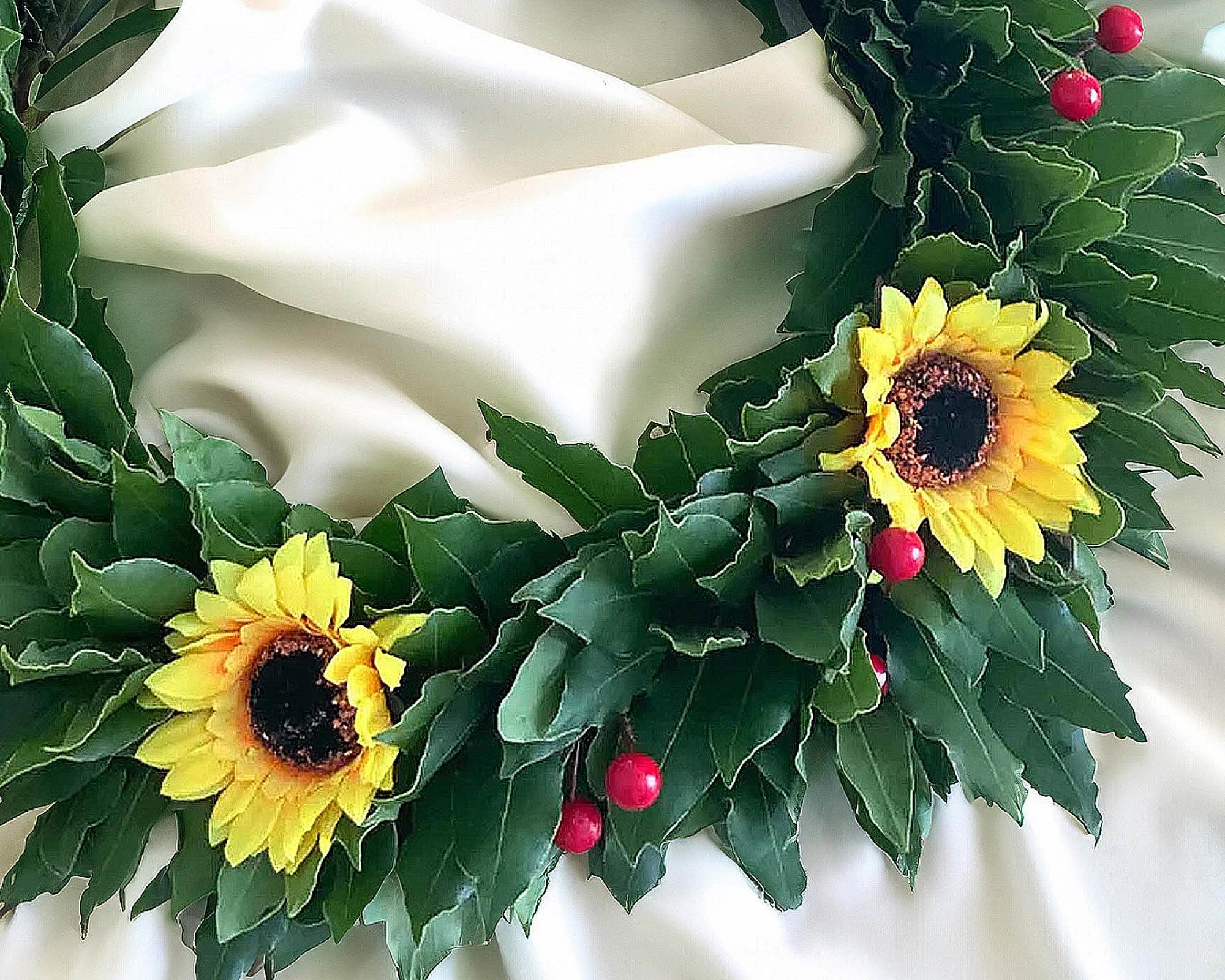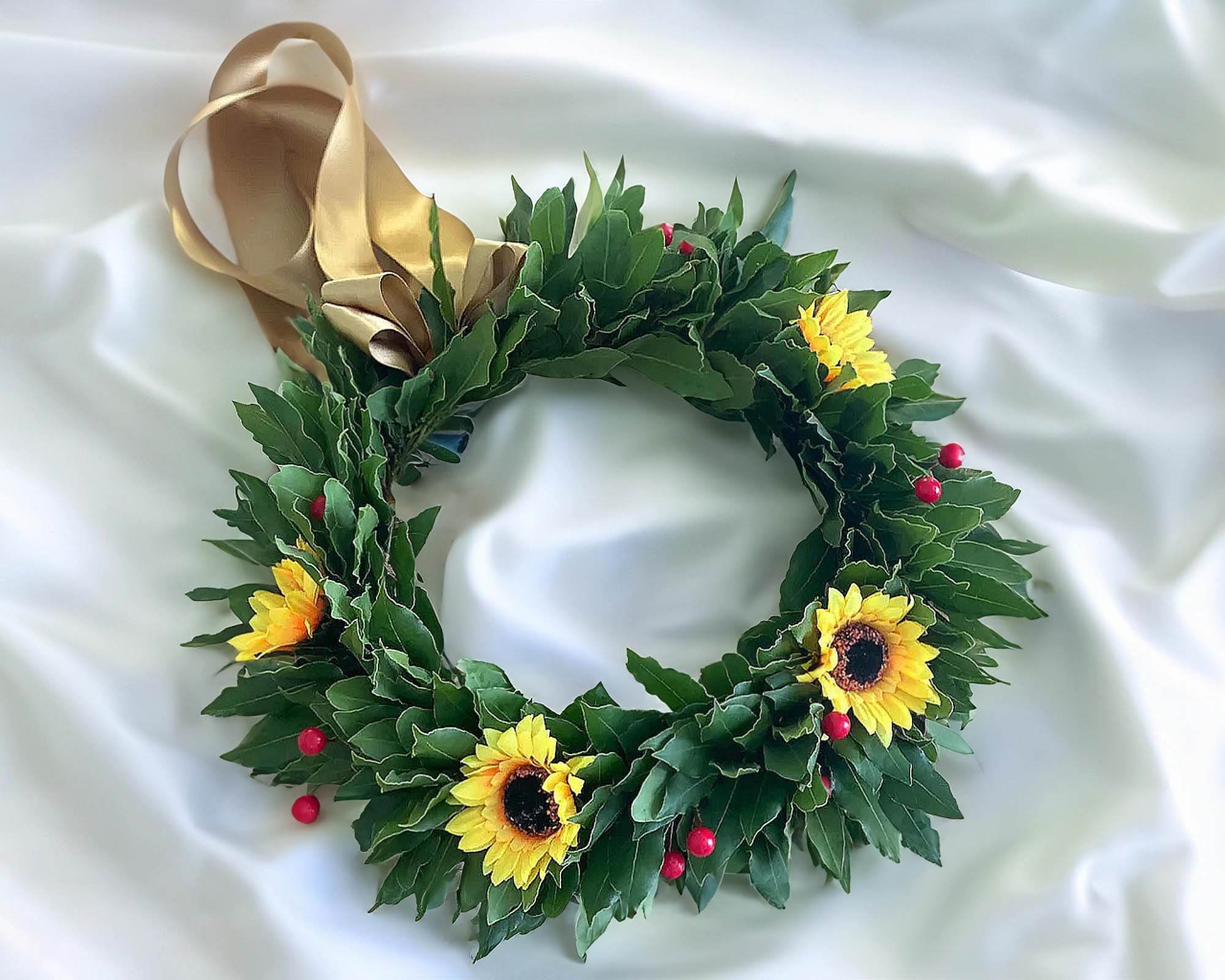 Corona di Alloro per Laurea con Girasoli e Bacche