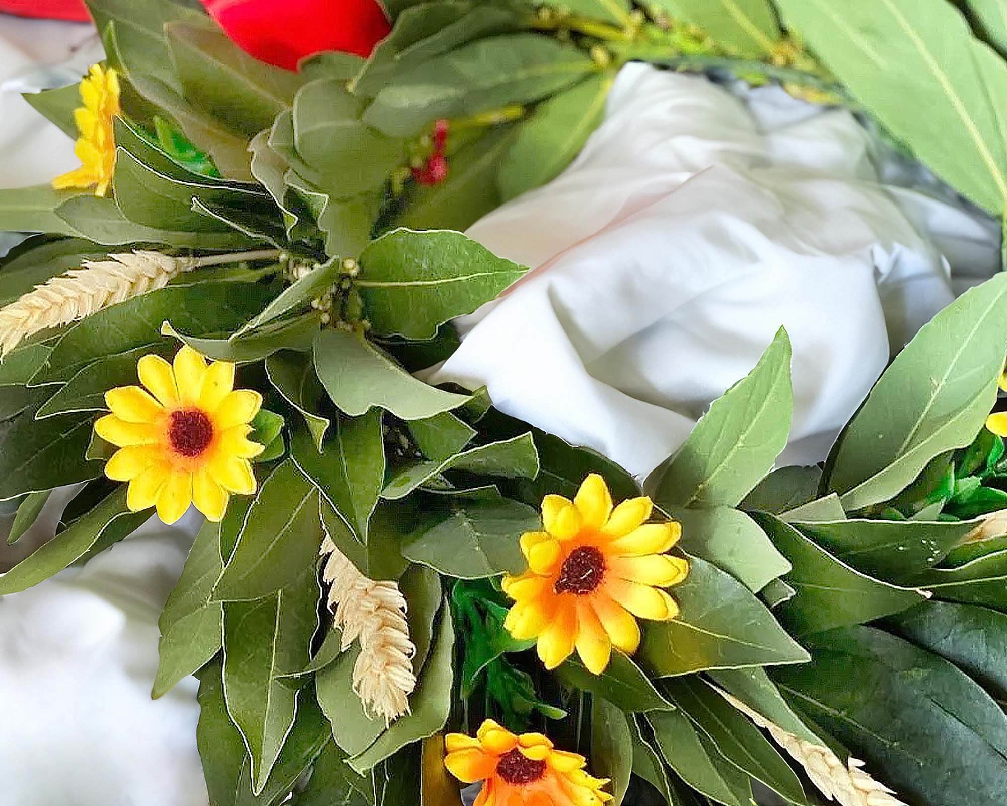 - Composizione: Alloro, Girasoli, Spighee Nastro
