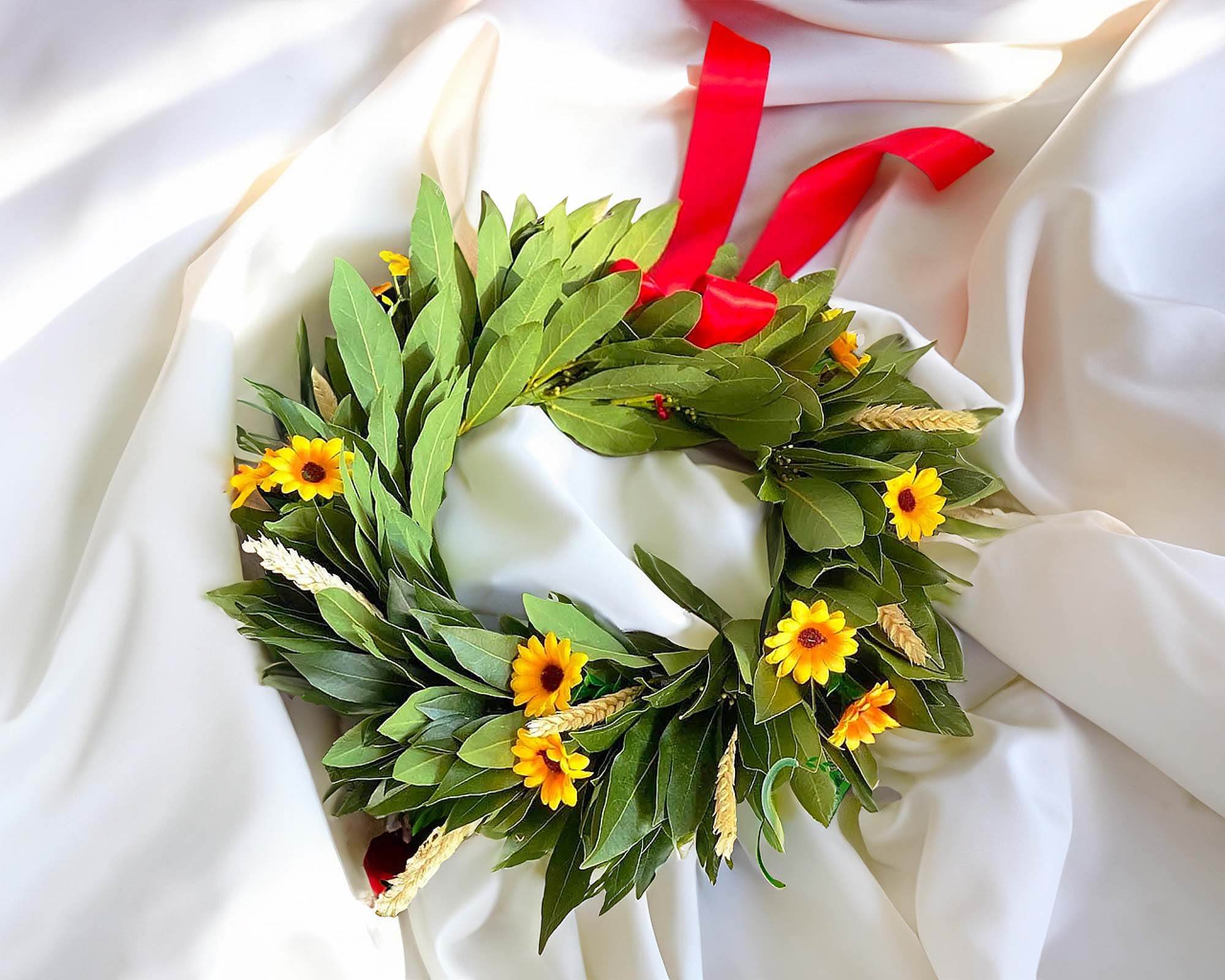 Corona di Alloro per Laurea con Girasoli e Spighe