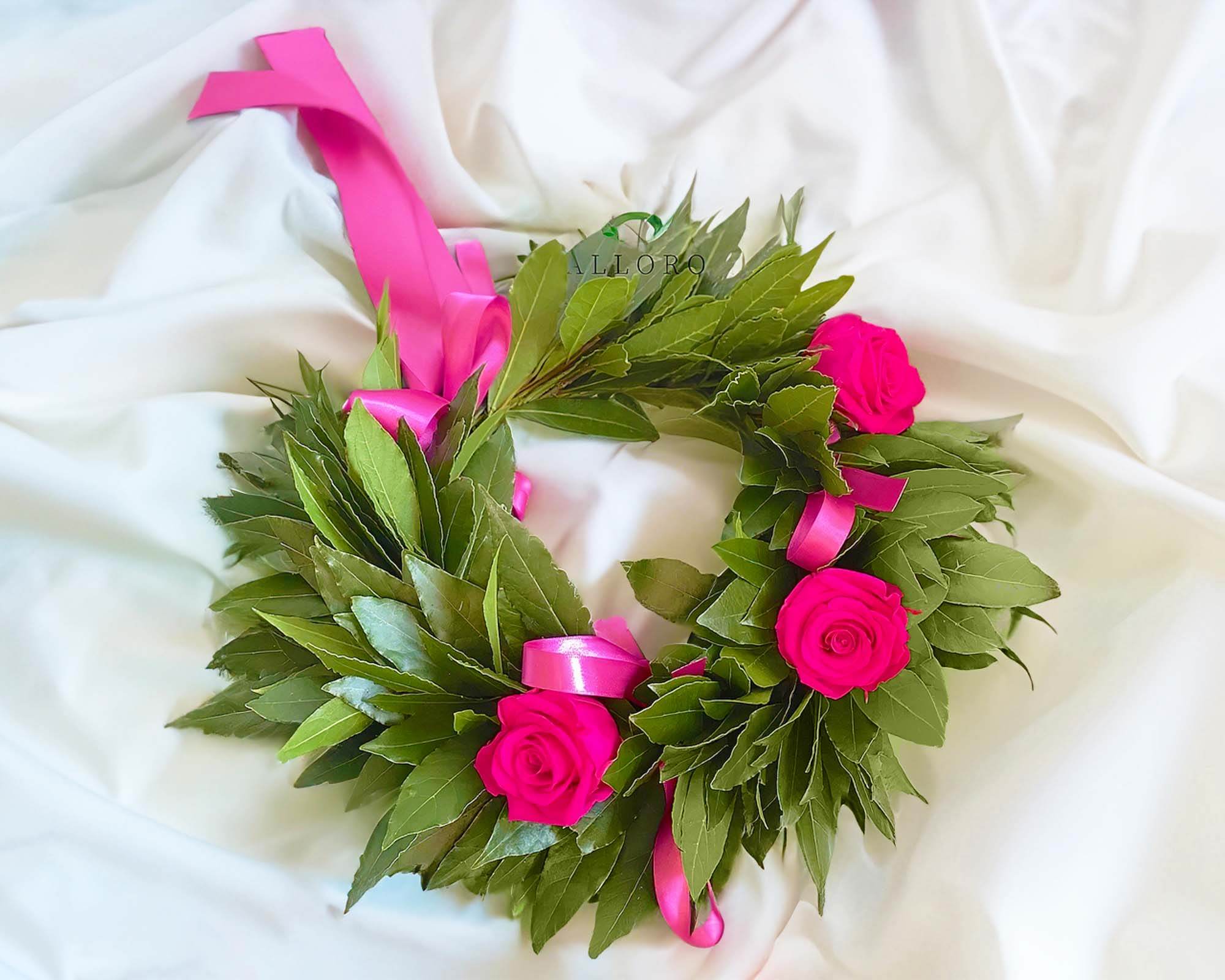 Corona di Alloro per Laurea con Roselline Fucsia