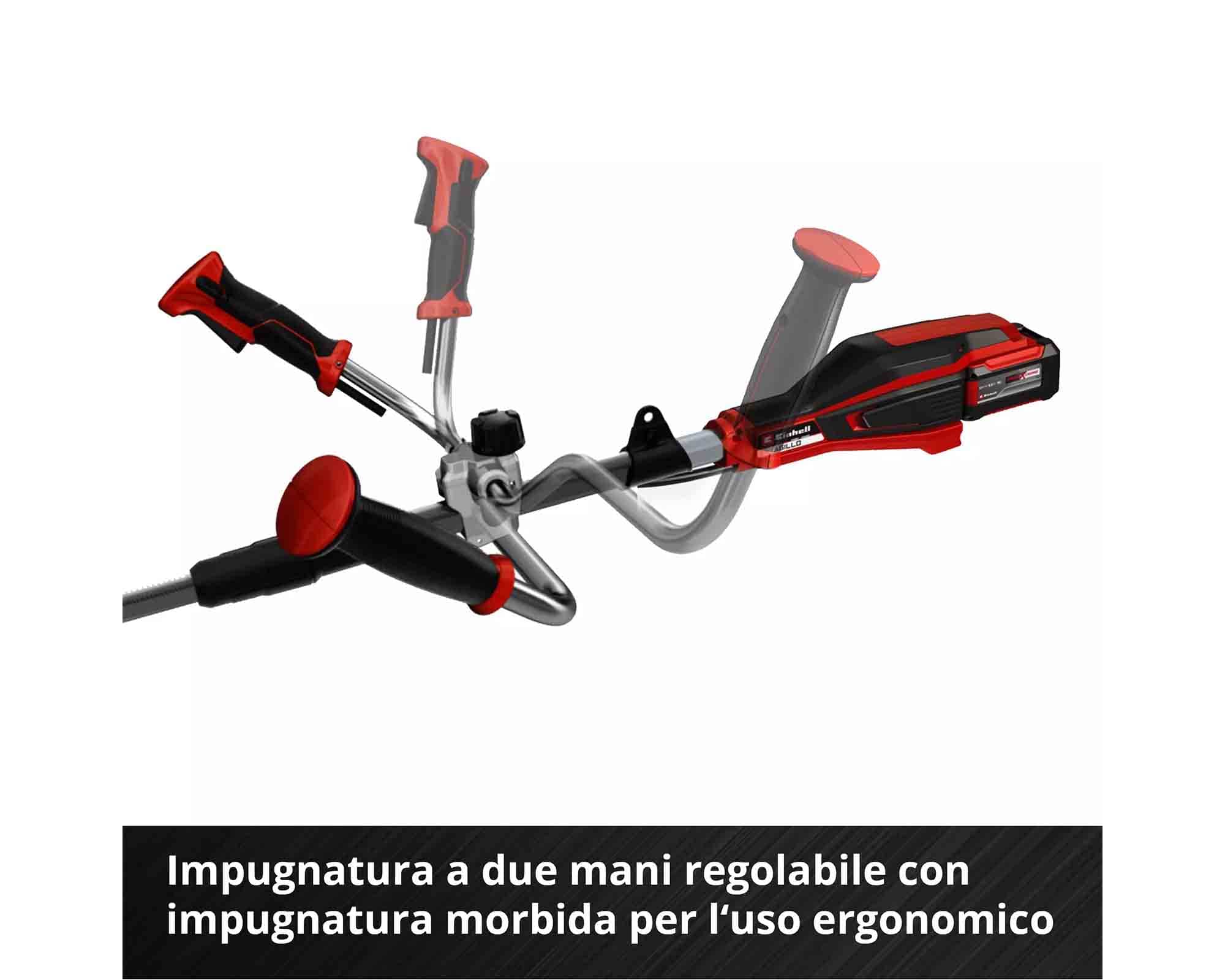 Il manubrio, nella pratica versione a “corna di bue”, dispone di un’impostazione universale per un utilizzo versatile. La tracolla comoda ottimizza la maneggevolezza durante l’uso, mentre l’impugnatura di guida in alluminio leggero è ergonomica e dotata di rivestimento antiscivolo Softgrip, riducendo la fatica anche durante lavori prolungati.