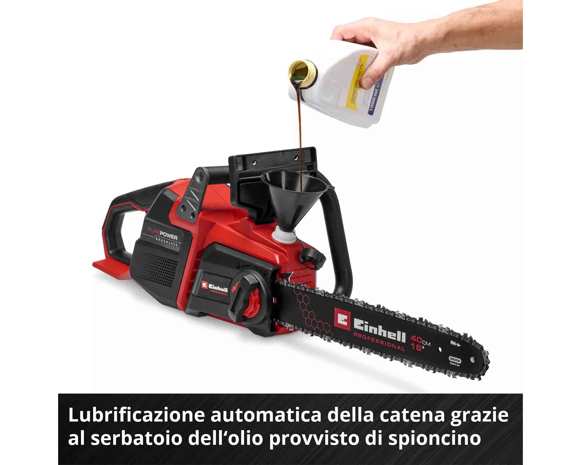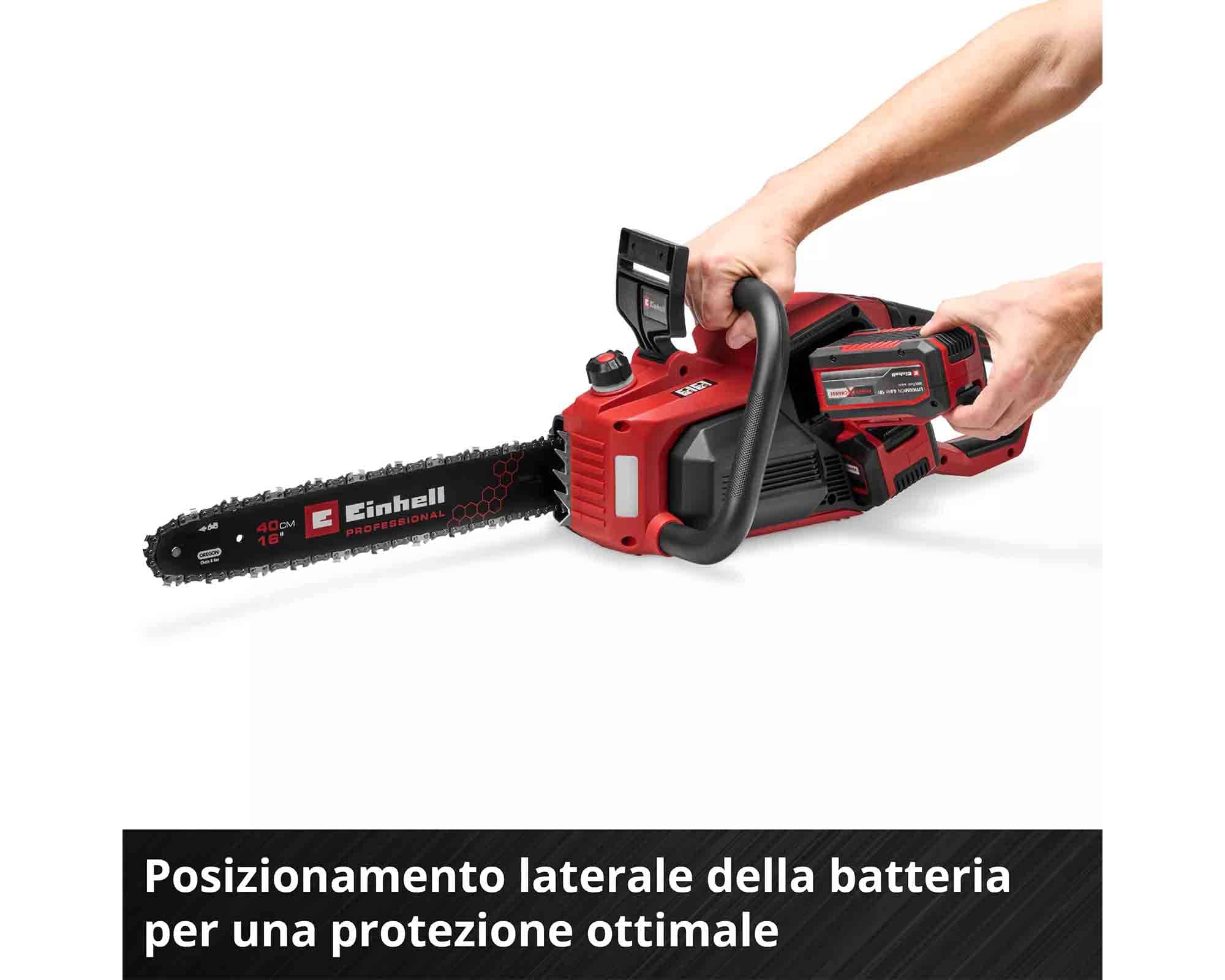 La sega a catena a batteria Einhell Professional GP-LC 36/40 Li BL-Solo viene fornita senza batteria e senza caricabatteria, che sono disponibili separatamente