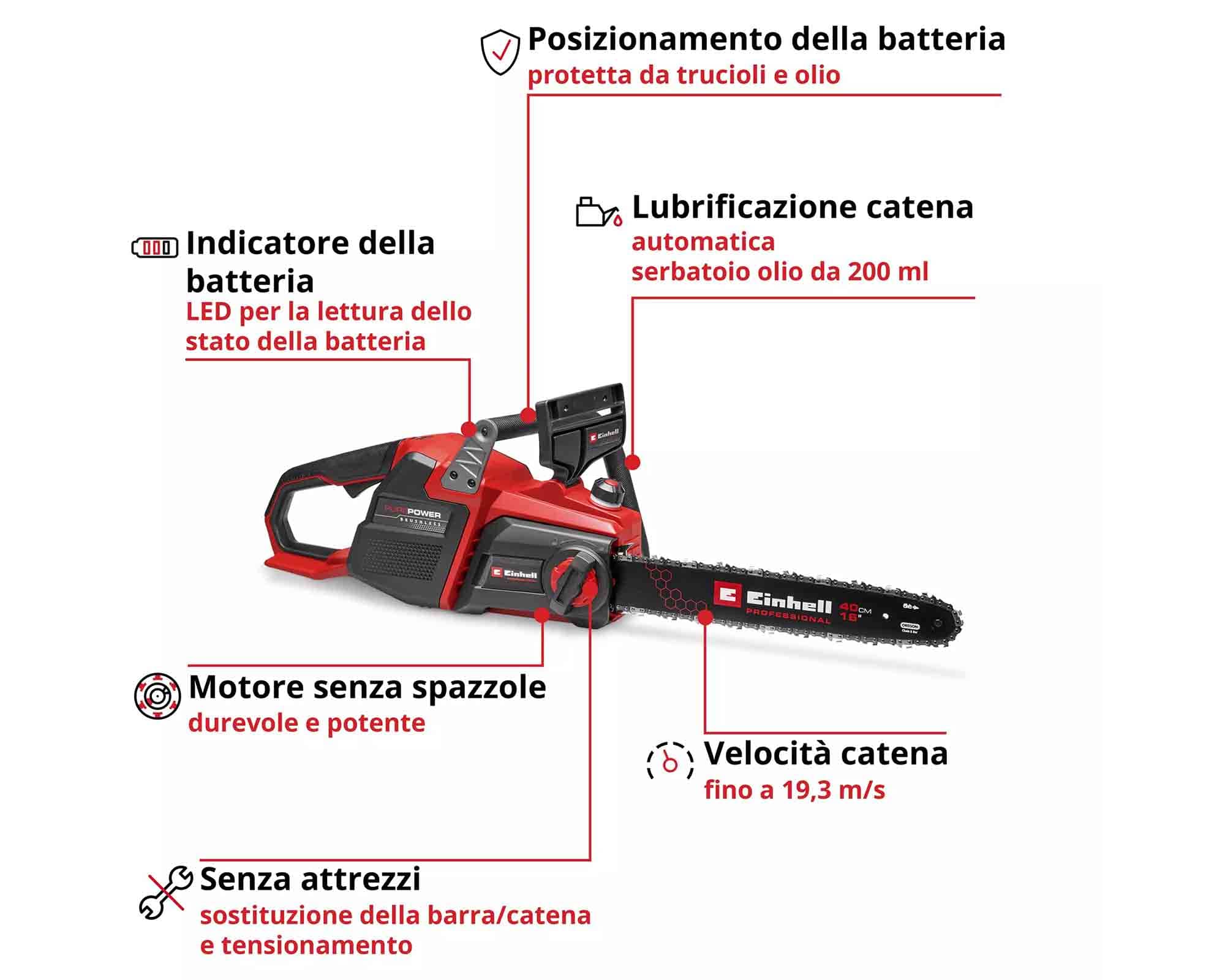 Elettrosega a Catena a Batteria 36 V Lunghezza di Taglio 38cm GP-LC 36/40 LI BL – Einhel