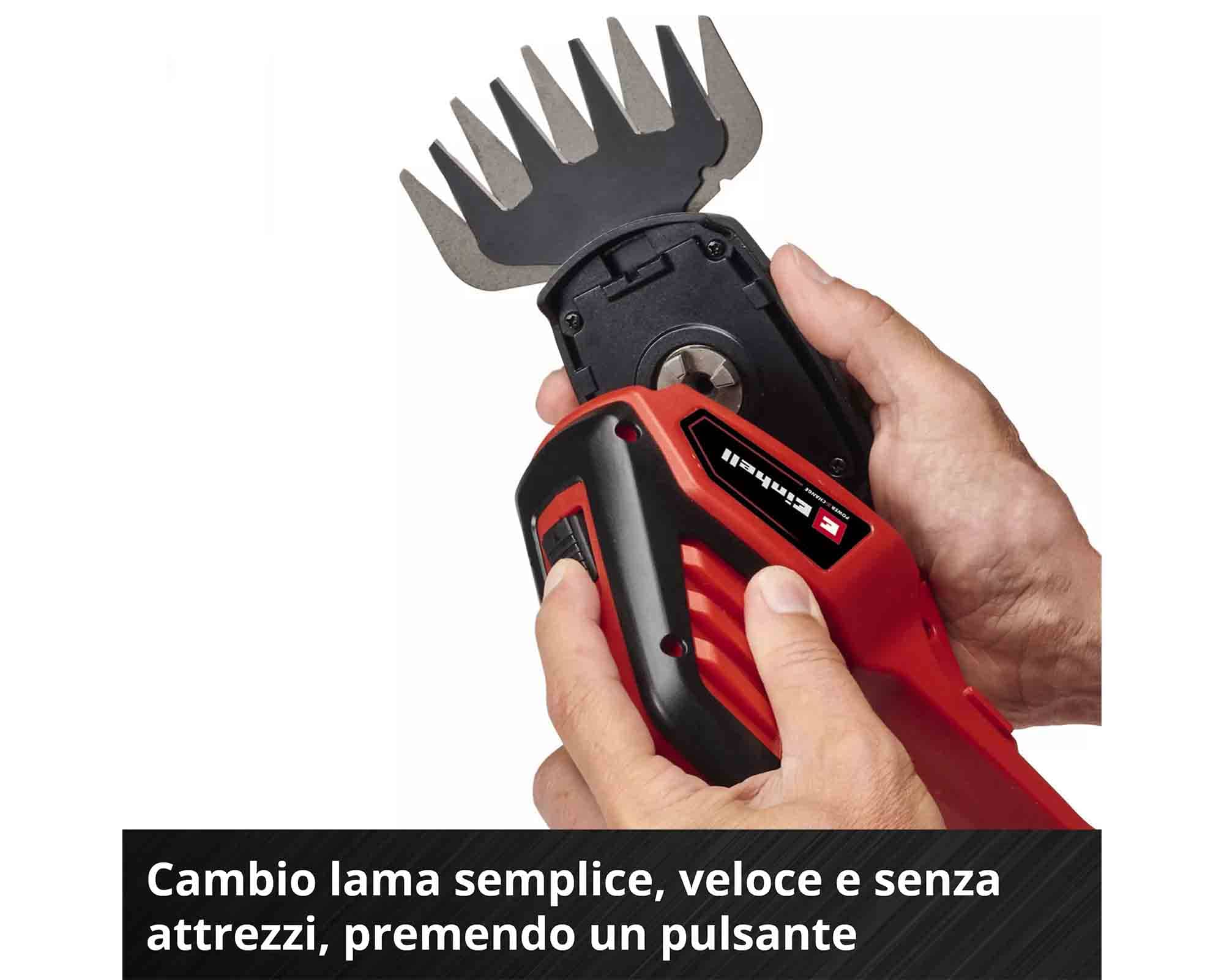 Il cambio delle lame è rapido e senza attrezzi, rendendo il passaggio tra le varie funzioni ancora più comodo. L’impugnatura morbida ed ergonomica assicura una presa stabile e confortevole durante l’utilizzo, mentre la protezione degli ingranaggi coperti impedisce il contatto accidentale con le parti lubrificate.