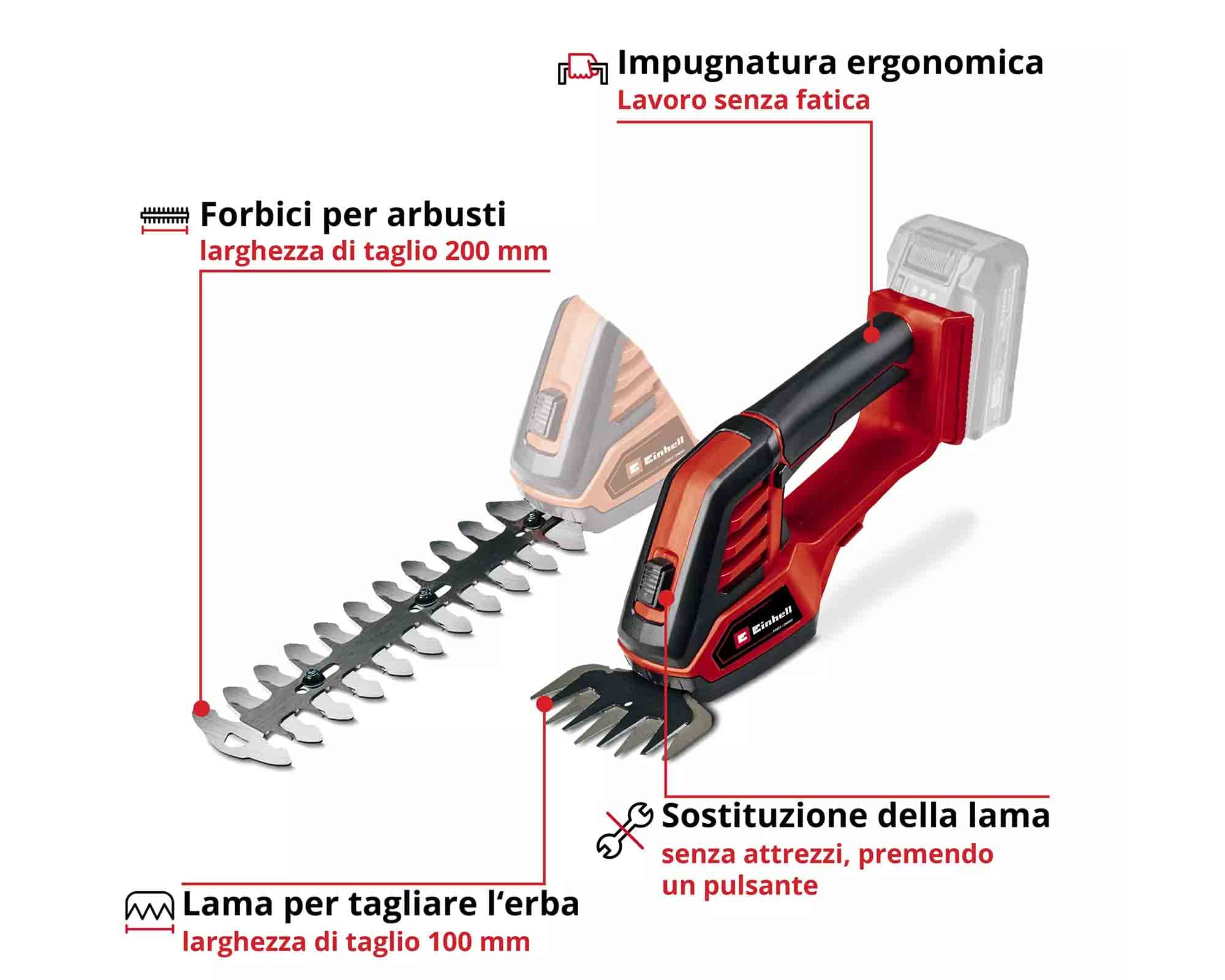 Forbici per Erba e Cespugli a Batteria 18 V Spessore di Taglio 8mm GE-CG 18/100 – Einhel