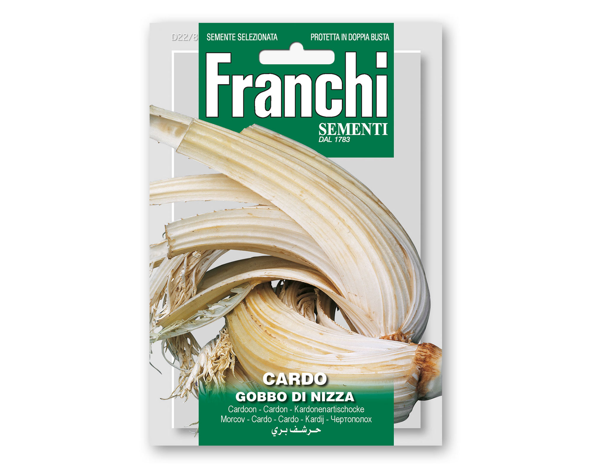 Semi di Cardo Gobbo di Nizza – di FRANCHI SEMENTI. Varietà medio-tardiva. Pianta vigorosa, con coste larghe di colore grigio-argento, piene e con pochi filamenti. Foglie leggermente frastagliate e con poche spine.