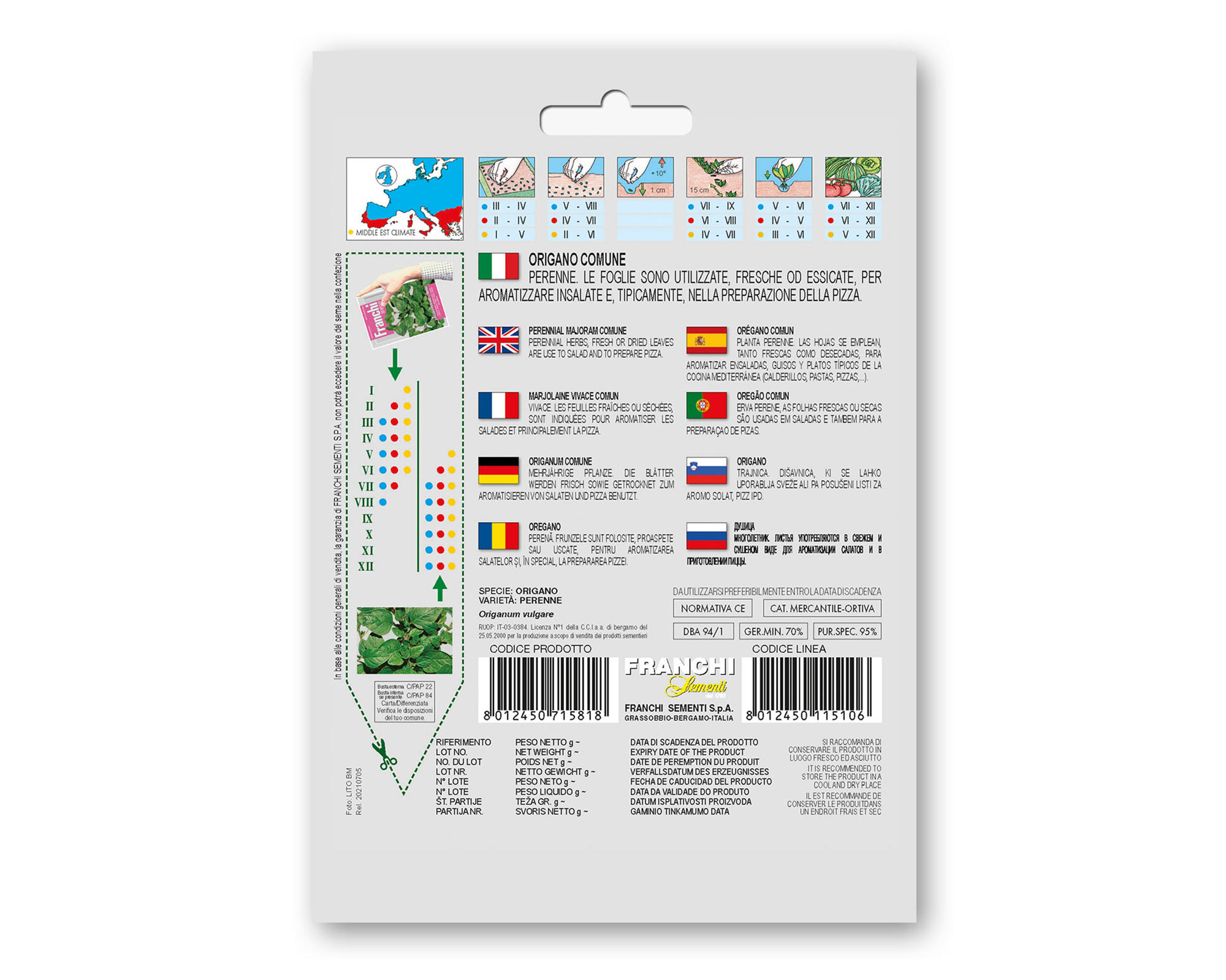 Semi di Origano Comune – di FRANCHI SEMENTI. Perenne. Le foglie sono utilizzate, fresche od essicate, per aromatizzare insalate e, tipicamente, nella preparazione della pizza.