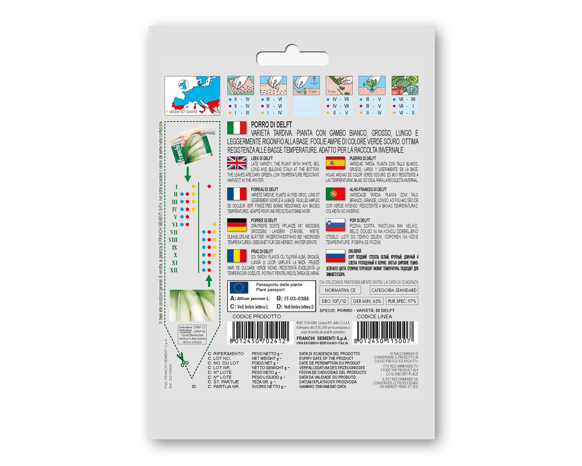 Semi di Porro di Delft – di FRANCHI SEMENTI. Varietà tardiva. Pianta con gambo bianco, grosso, lungo e leggermente rigonfio alla base. Foglie ampie di colore verde scuro. Ottima resistenza alle basse temperature. Adatto per la raccolta invernale.