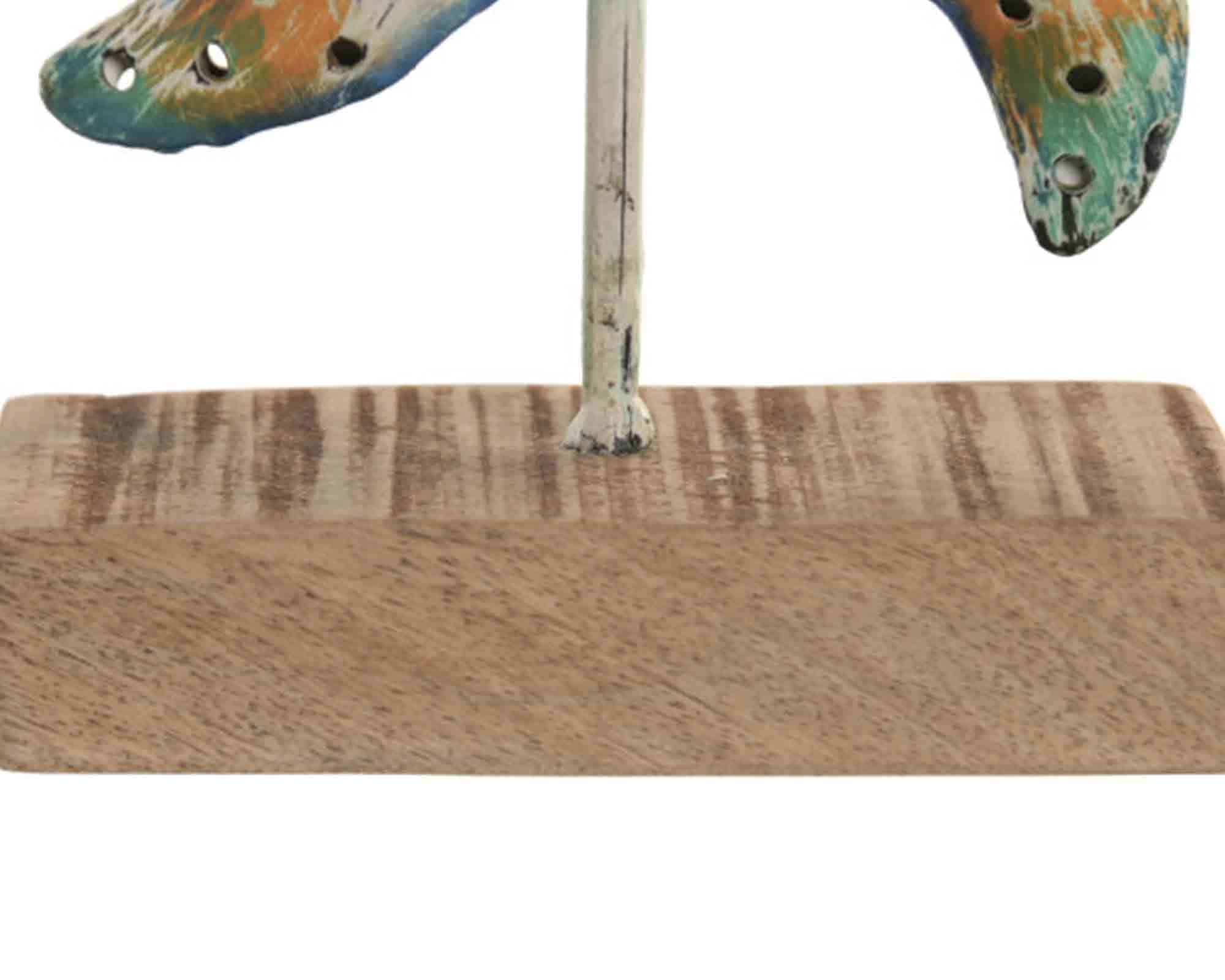 Realizzata in ferro, questa decorazione si distingue per il suo design leggero ma deciso, capace di arricchire ogni spazio con eleganza e personalità. Le linee armoniose e la composizione equilibrata la rendono perfetta per interni dallo stile moderno, coastal o contemporaneo.