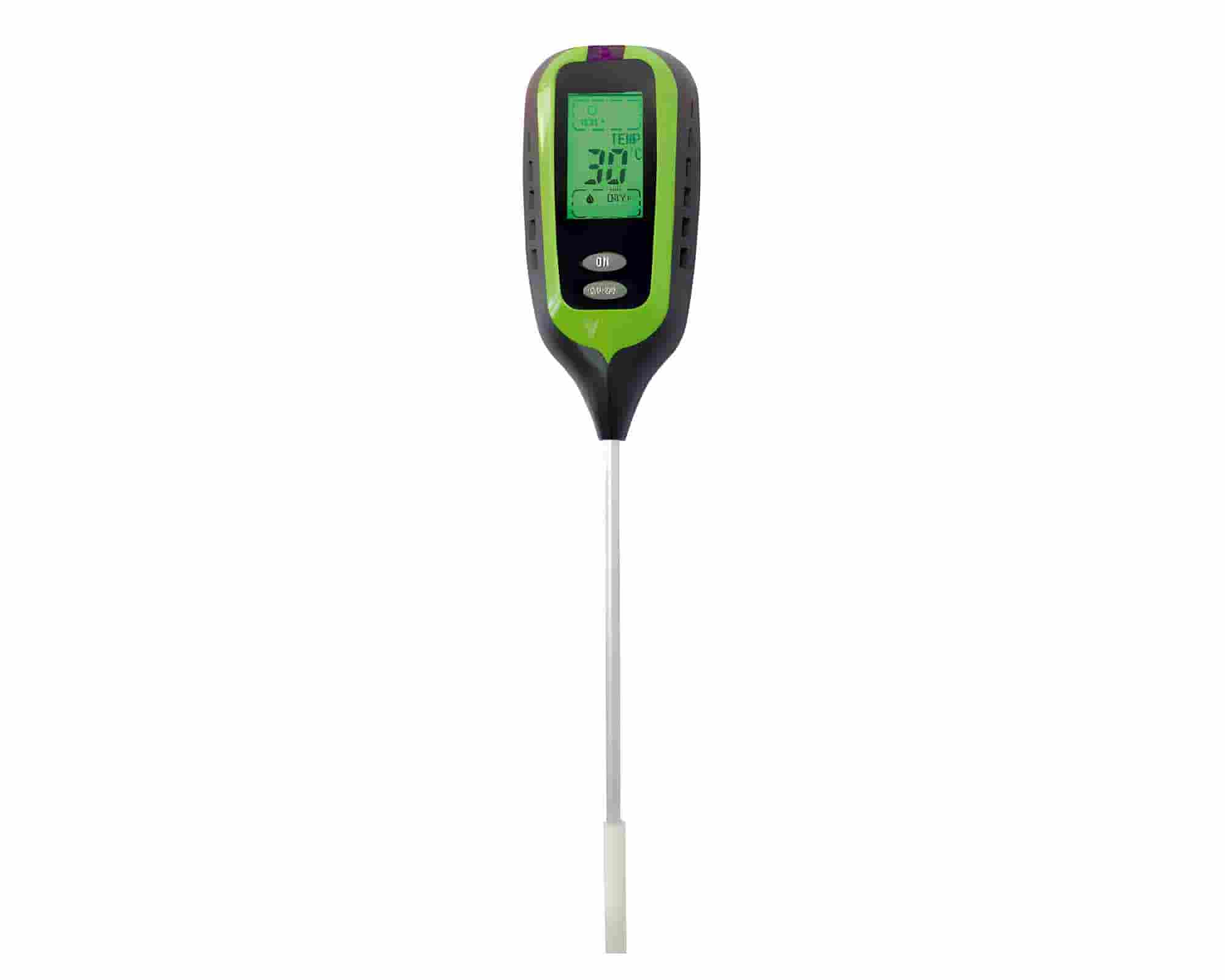 Dotato di display LCD digitale, garantisce una lettura chiara e immediata dei valori rilevati, facilitando il controllo delle condizioni del terreno e dell’ambiente. Il dispositivo funziona con 1 pila da 9V (non inclusa), assicurando praticità e autonomia durante l’utilizzo.