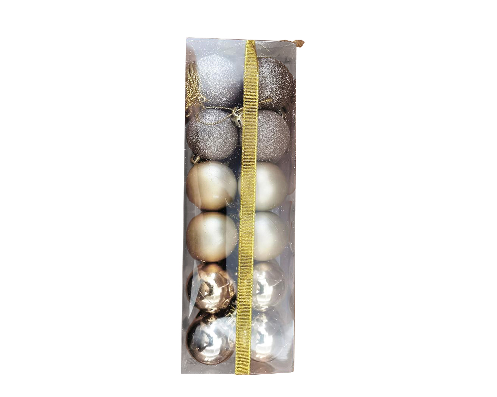 Questo piccolo box contiene 30 sfere mix marrone di 40 mm, all’interno del quale delle 24 palline 6 sfere sono color champagne opache e 6 sfere dorate lucide specchiate 10 ricoperte di glitter. Saranno la chiave per un momento di decorazione perfetto dove tutta la famiglia potrà partecipare.