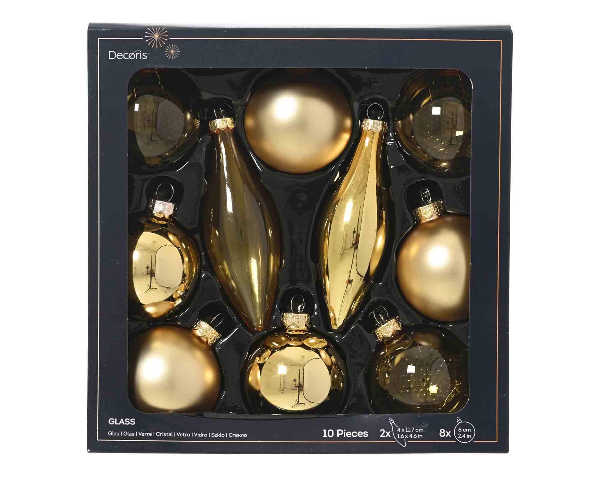 Set 10 Pz Sfere e Pendenti Dorato Assortito D6cm in Vetro