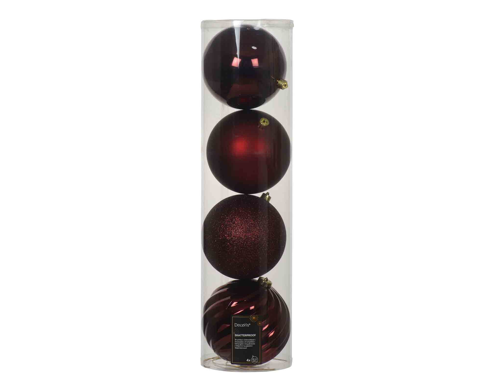 Set 4 Pz Sfere Rosso Scuro Assortito D14cm in Vetro