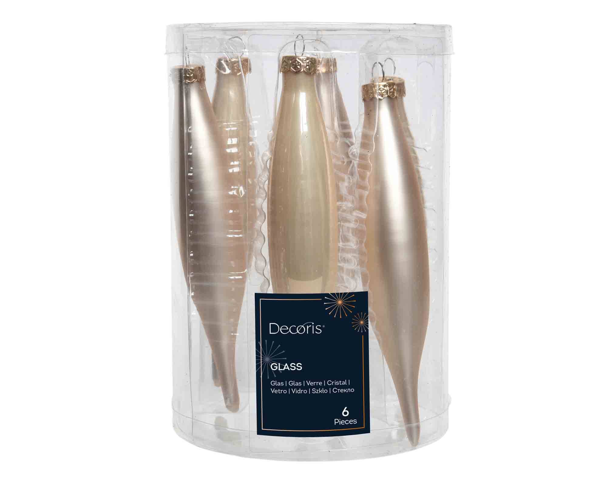 Set 6 Pz Pendenti Icicle Perla D3x15cm in Vetro