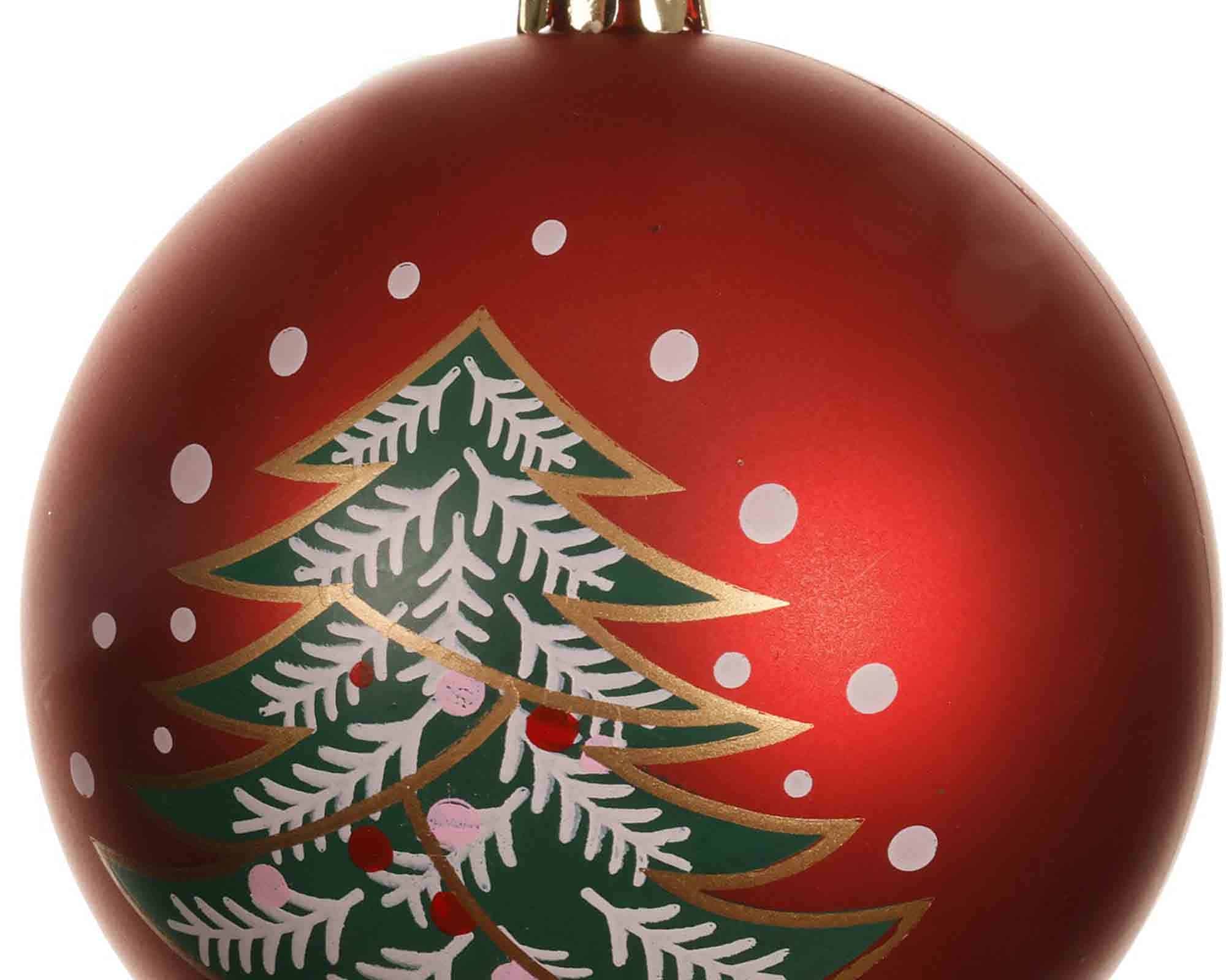 Sfera Rosso con Albero di Natale Decorativo D8cm in Plastica