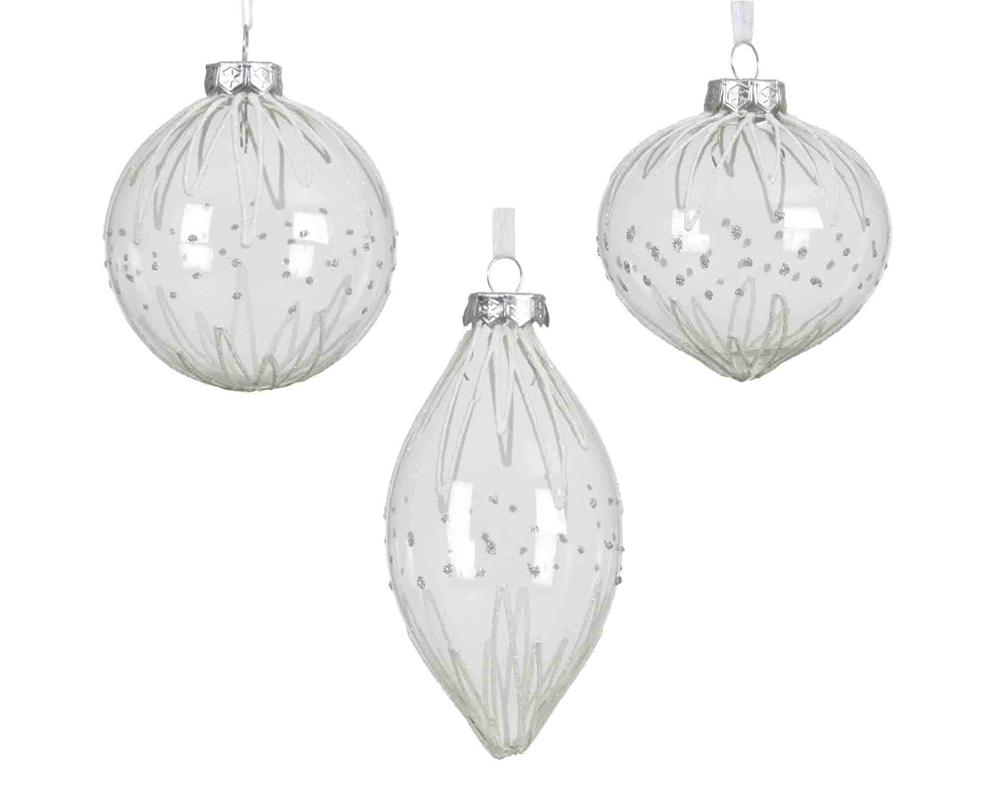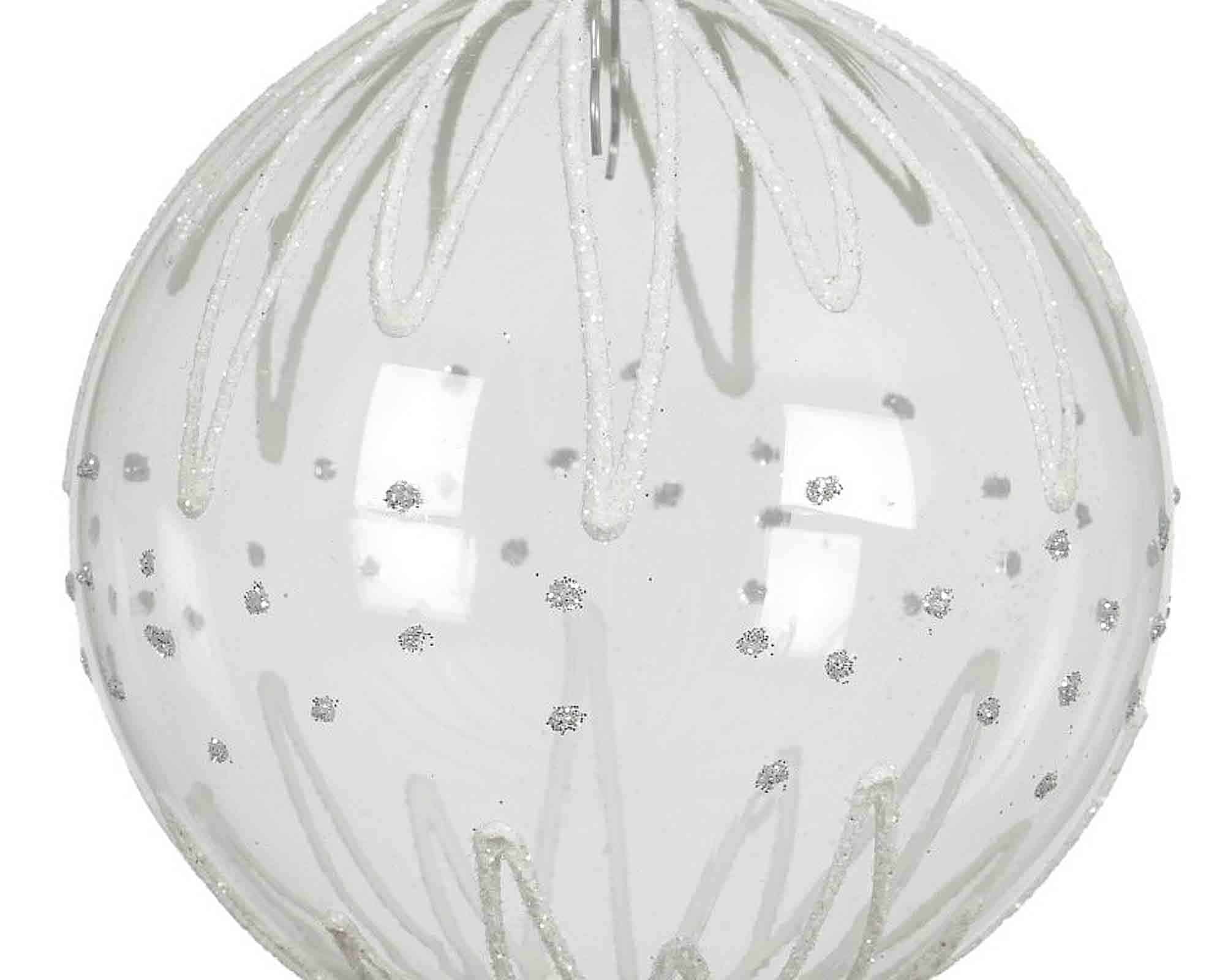 Sfera Trasparente con Vortici e Puntini Bianchi Decorativi Assortito D8cm in Vetro