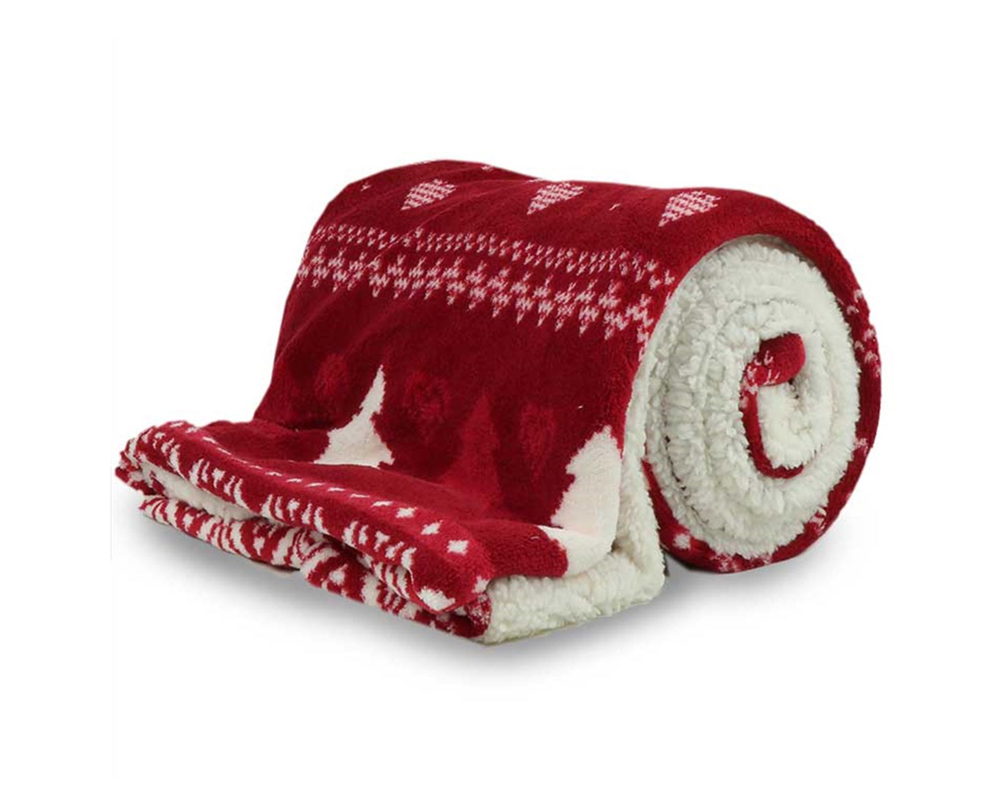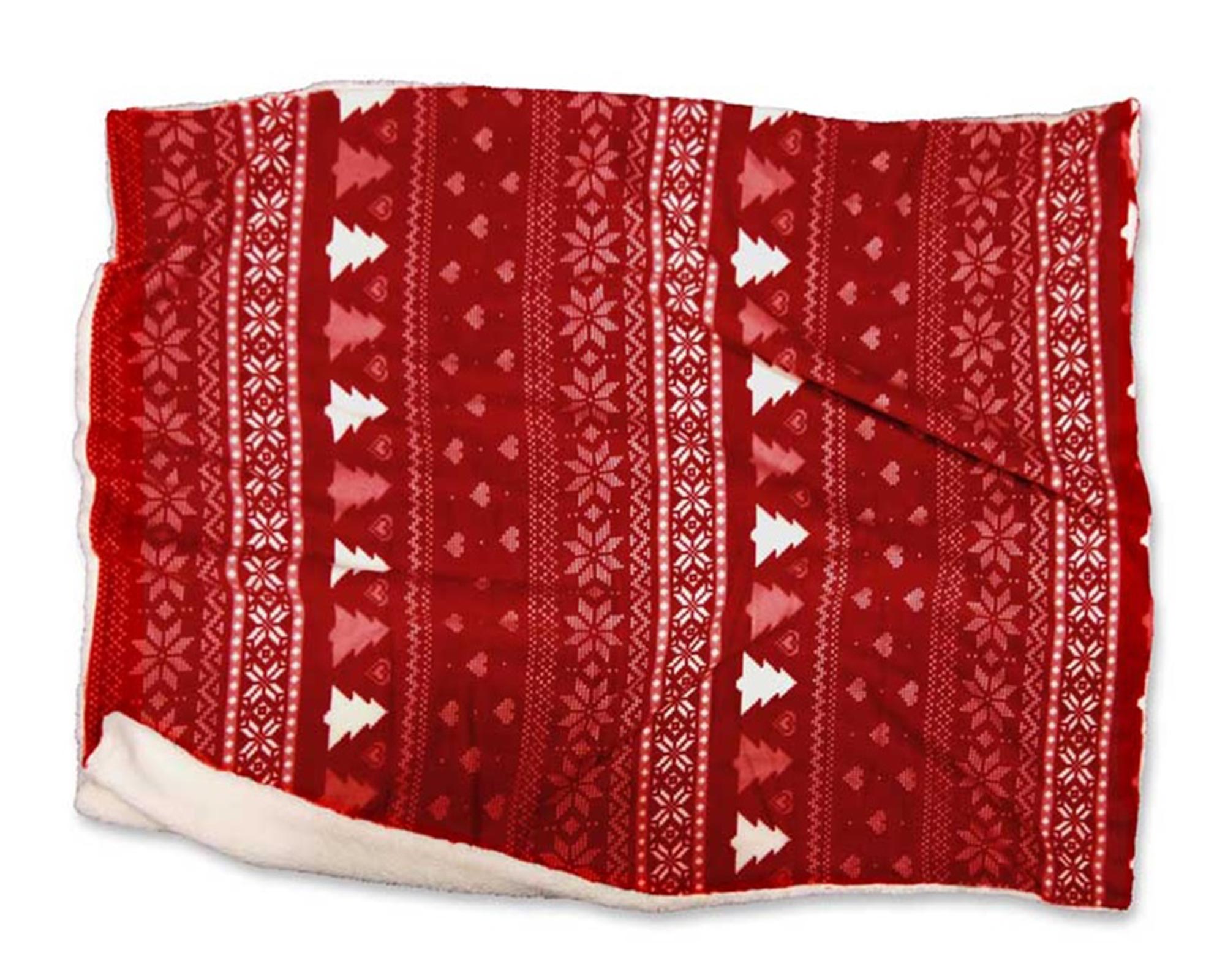 Coperta invernale rossa con decorazioni natalizie