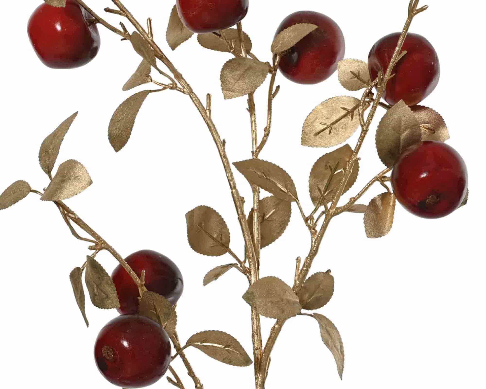 Decorazione Ramo con Bacche Rosse e Foglie Dorate con Bacche 21x12x91cm