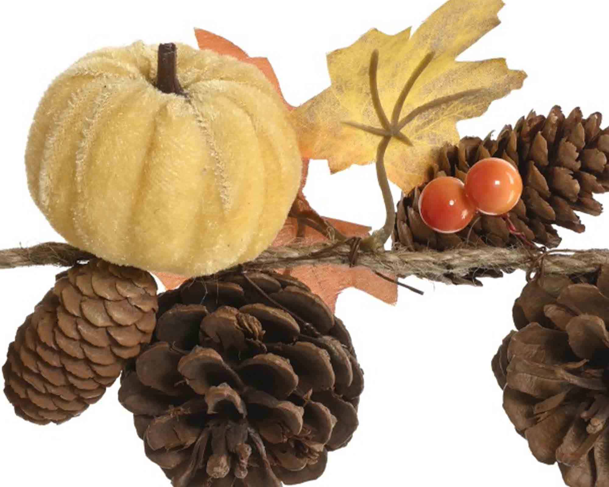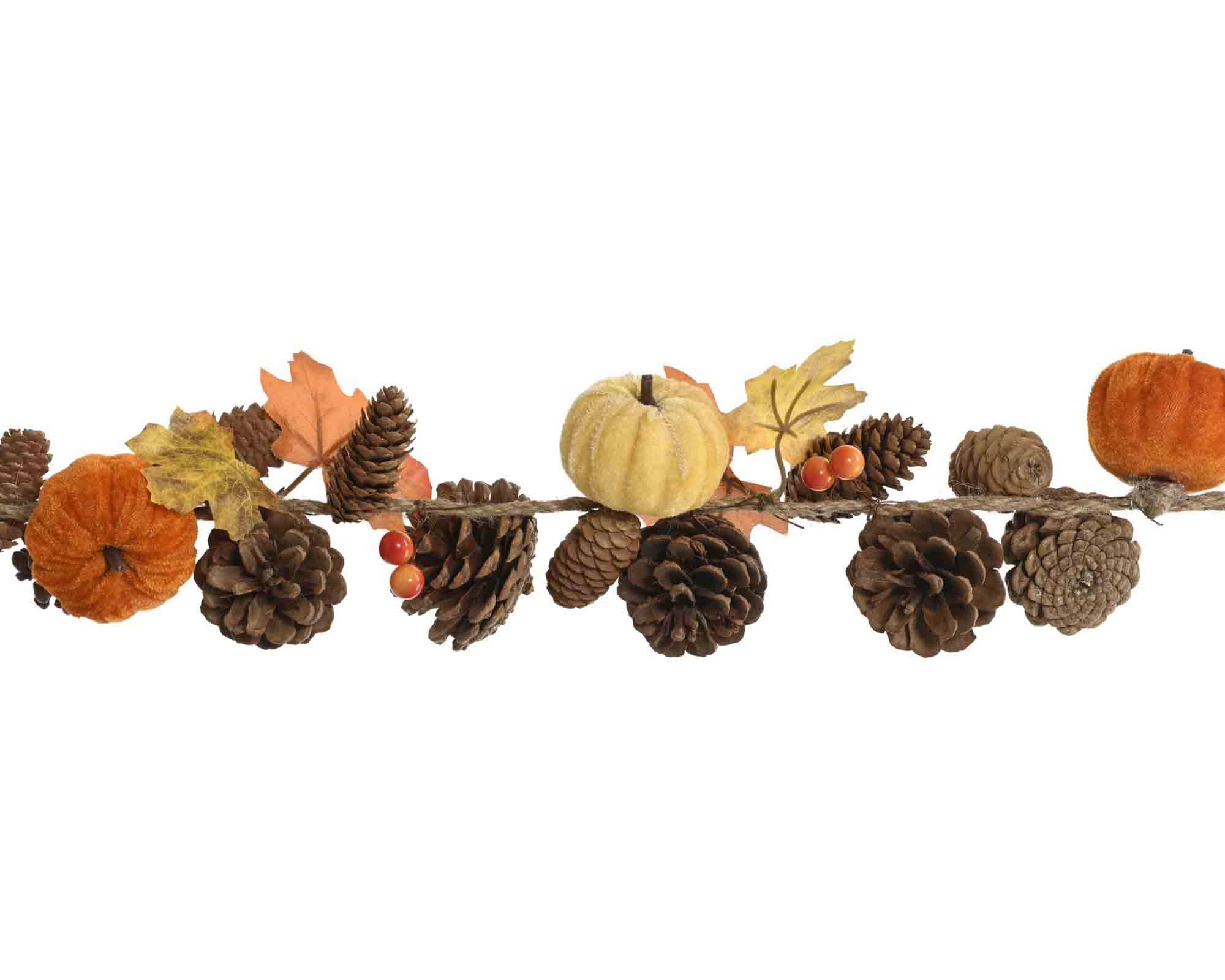 Decorazione Ramo di Ghirlanda con Pigne e Zucche Verde e Arancio 150cm