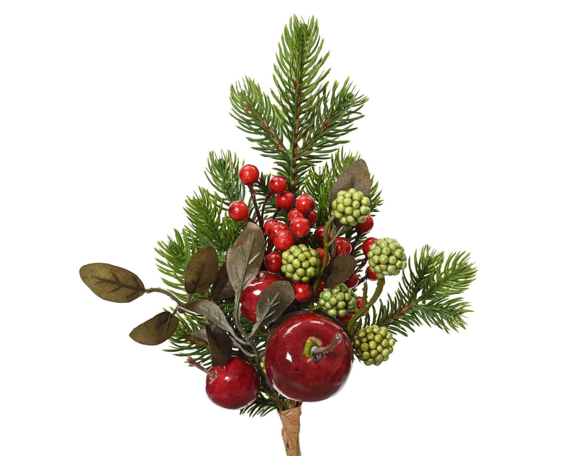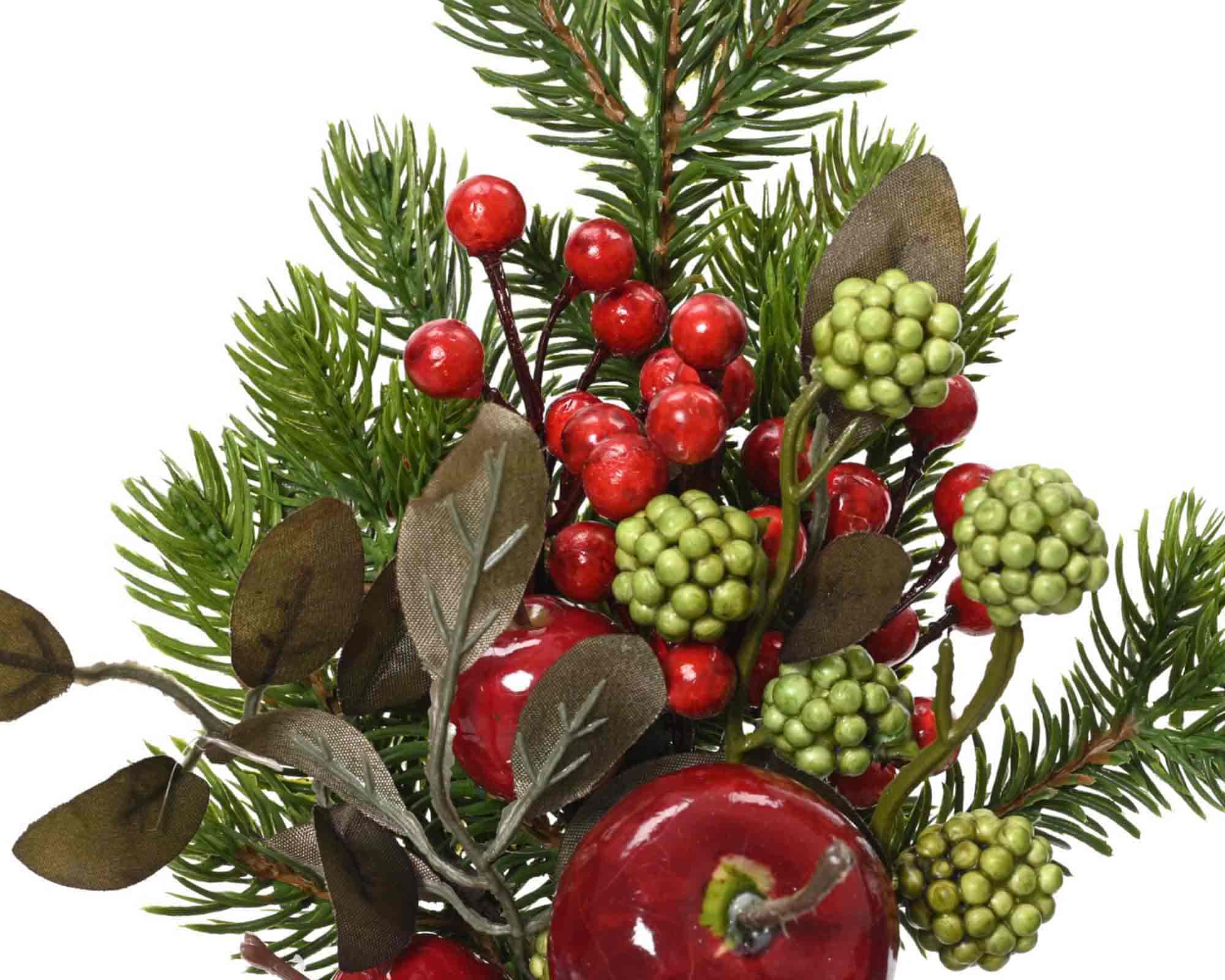 Decorazione Ramo Melex Bacche e More Verde e Rosso 8x26cm