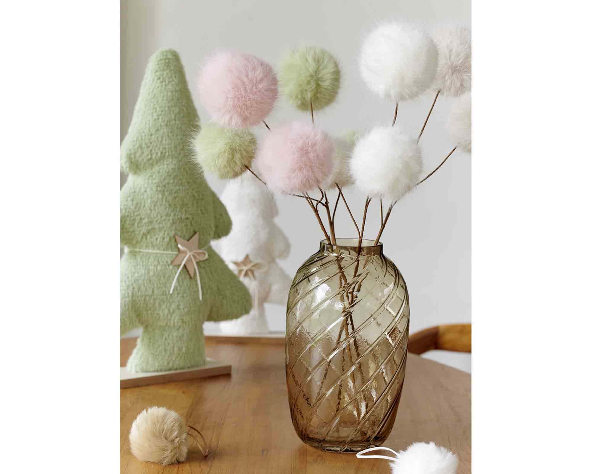 Decorazione Stelo Fluffy Morbido Bianco 12x12x70cm in Fibra Sintetica