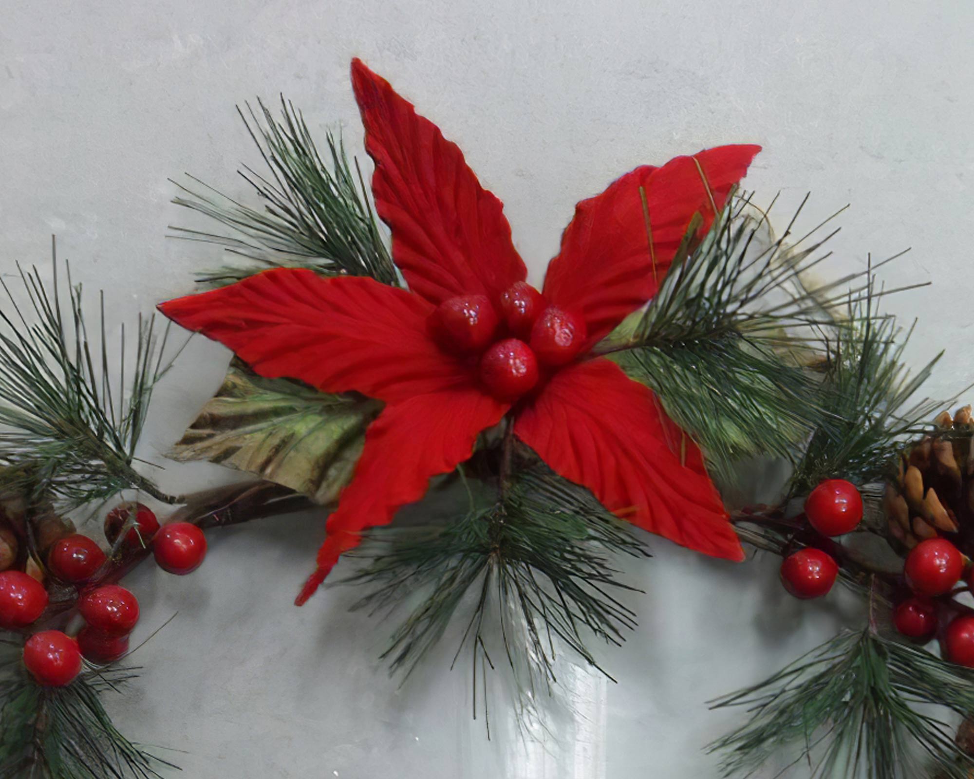 Appendi porta di pino con pigne, bacche e stella di natale