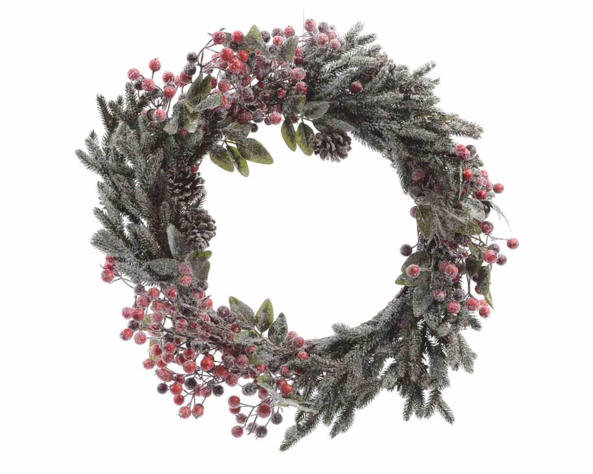 Decorazione Ghirlanda con Bacche e Pigne Innecata D40x9cm in PVC