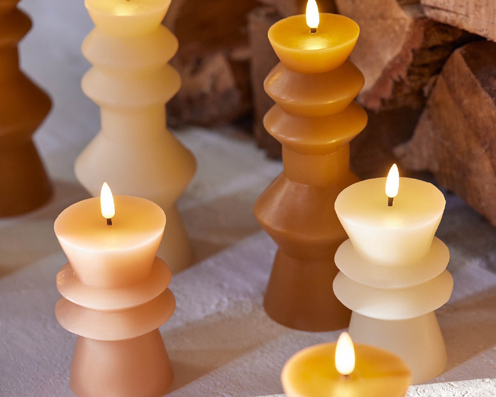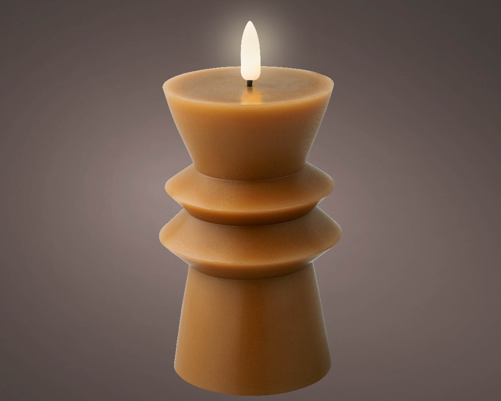 Candela con Stoppino Led Caldo Marrone D7,7xh14,6cm in Cera