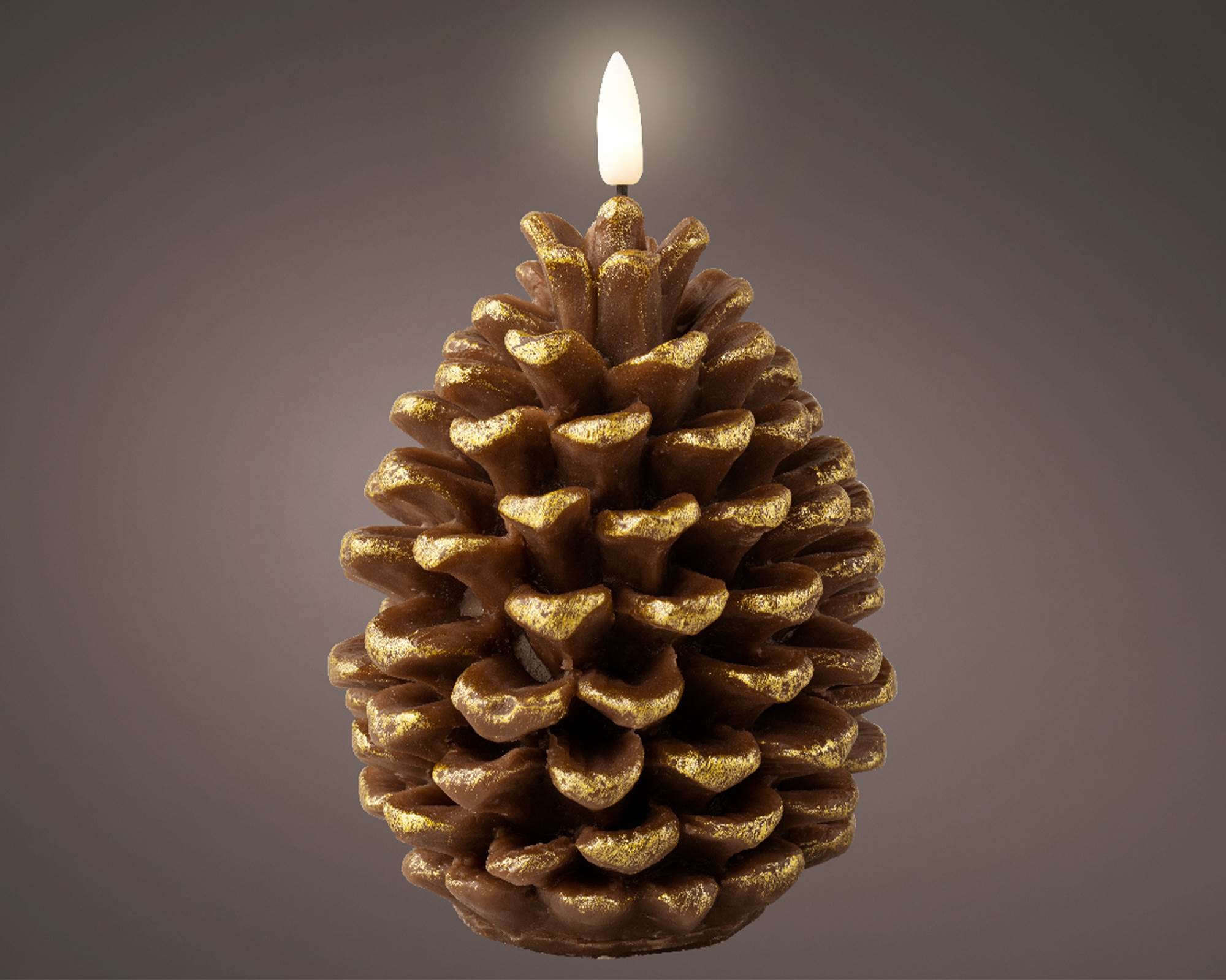 Candela Pigna con Stoppino Led Caldo Marrone D10,5xh15,6cm in Cera