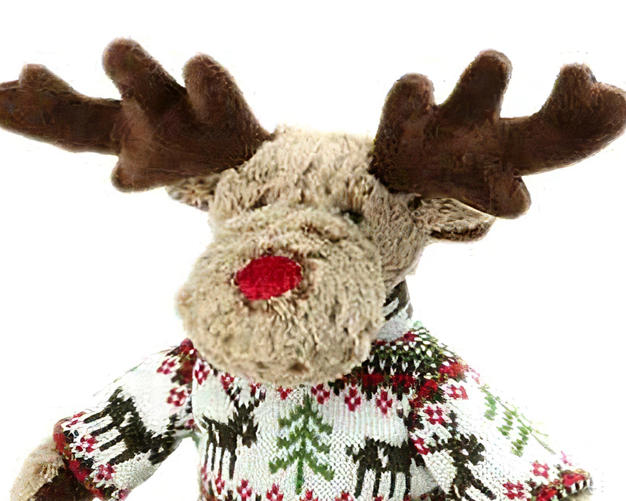 Decorazione in tessuto Renna di peluche natalizia con maglione di lana