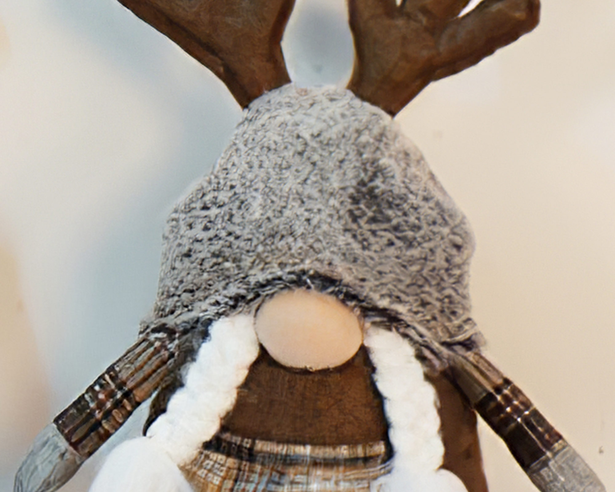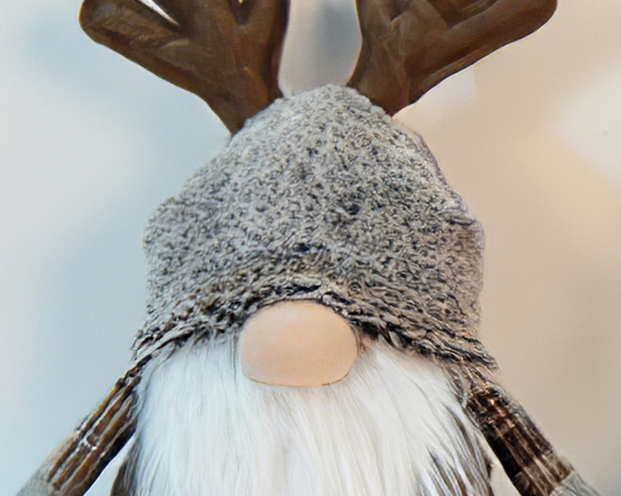 Decorazione Natalizia Gnomo Grigio Di Peluche Con Corna