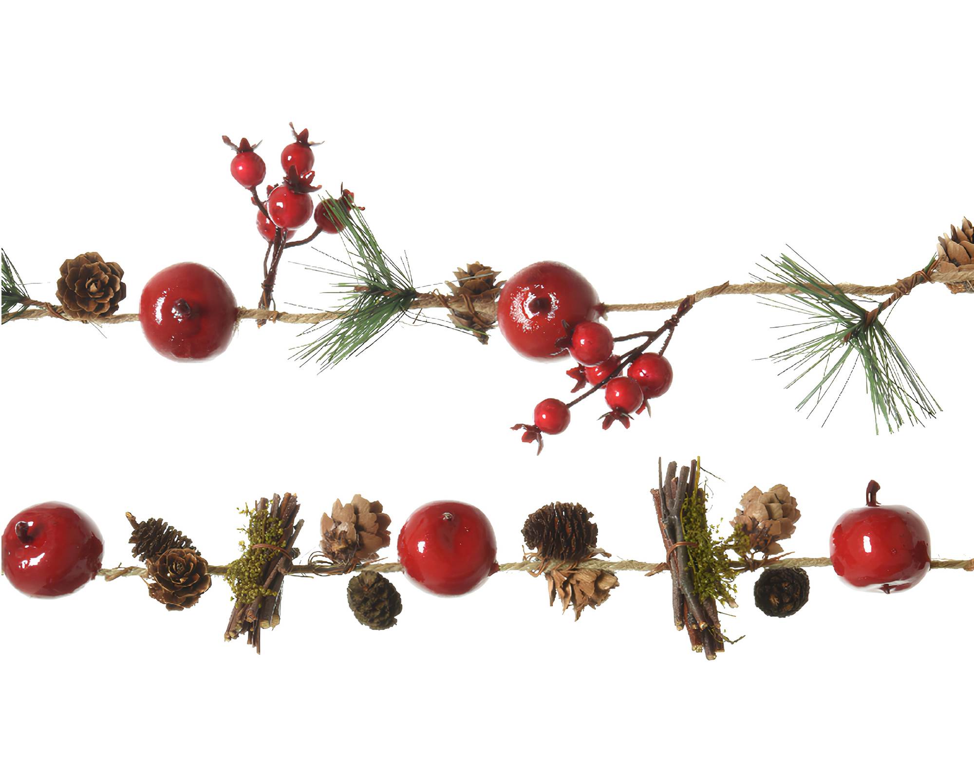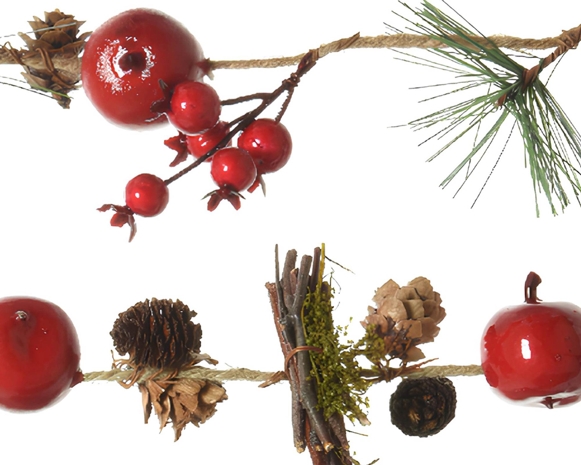 Ghirlanda con Pigne Bacche Mele Rosso 8x6x110cm in Plastica e Fibra Naturale