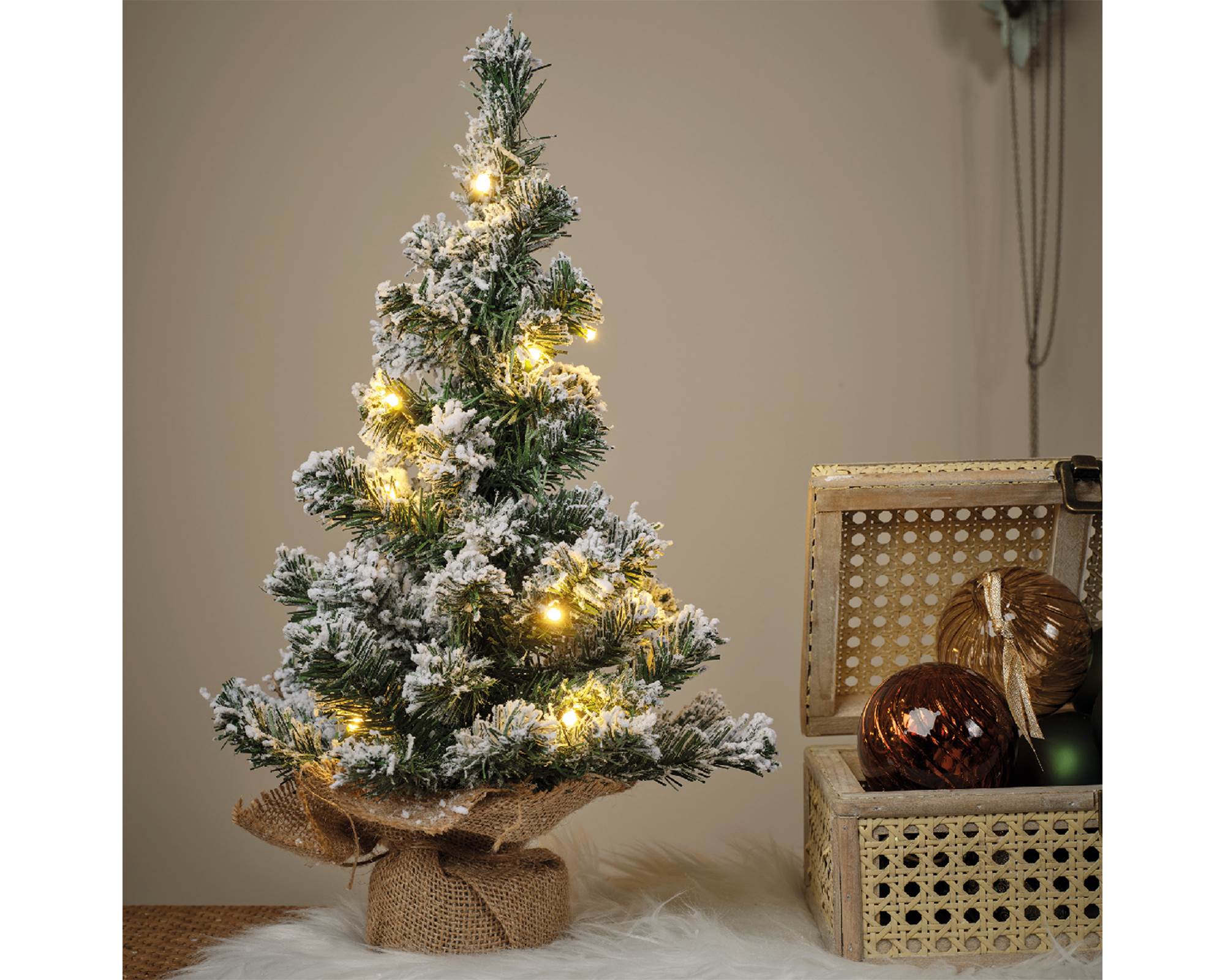 Mini Albero Imperial Floccato con Luci e Sacchetto D30x45cm in Pvc