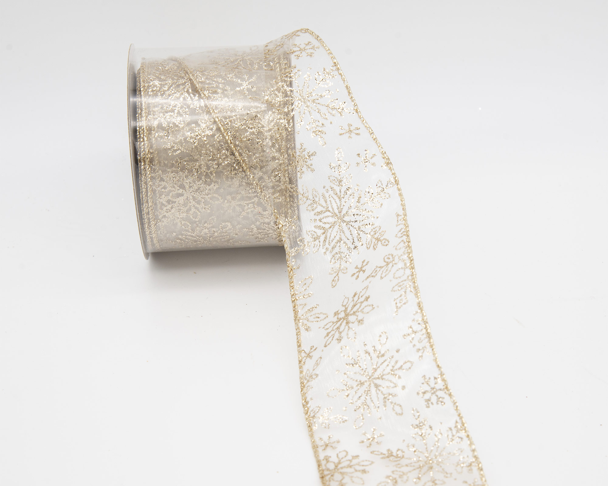 Nastro Di Natale Champagne Trasparente Con Fiocchi Di Neve