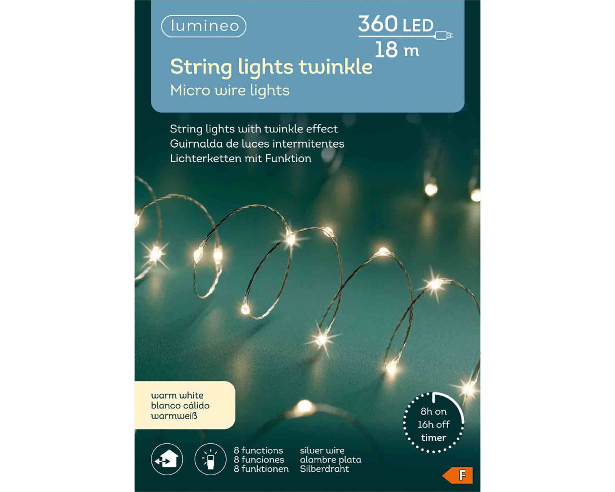 Catena Luci 360 Microled Spirale Cavo Bianco Luce Calda 1800cm