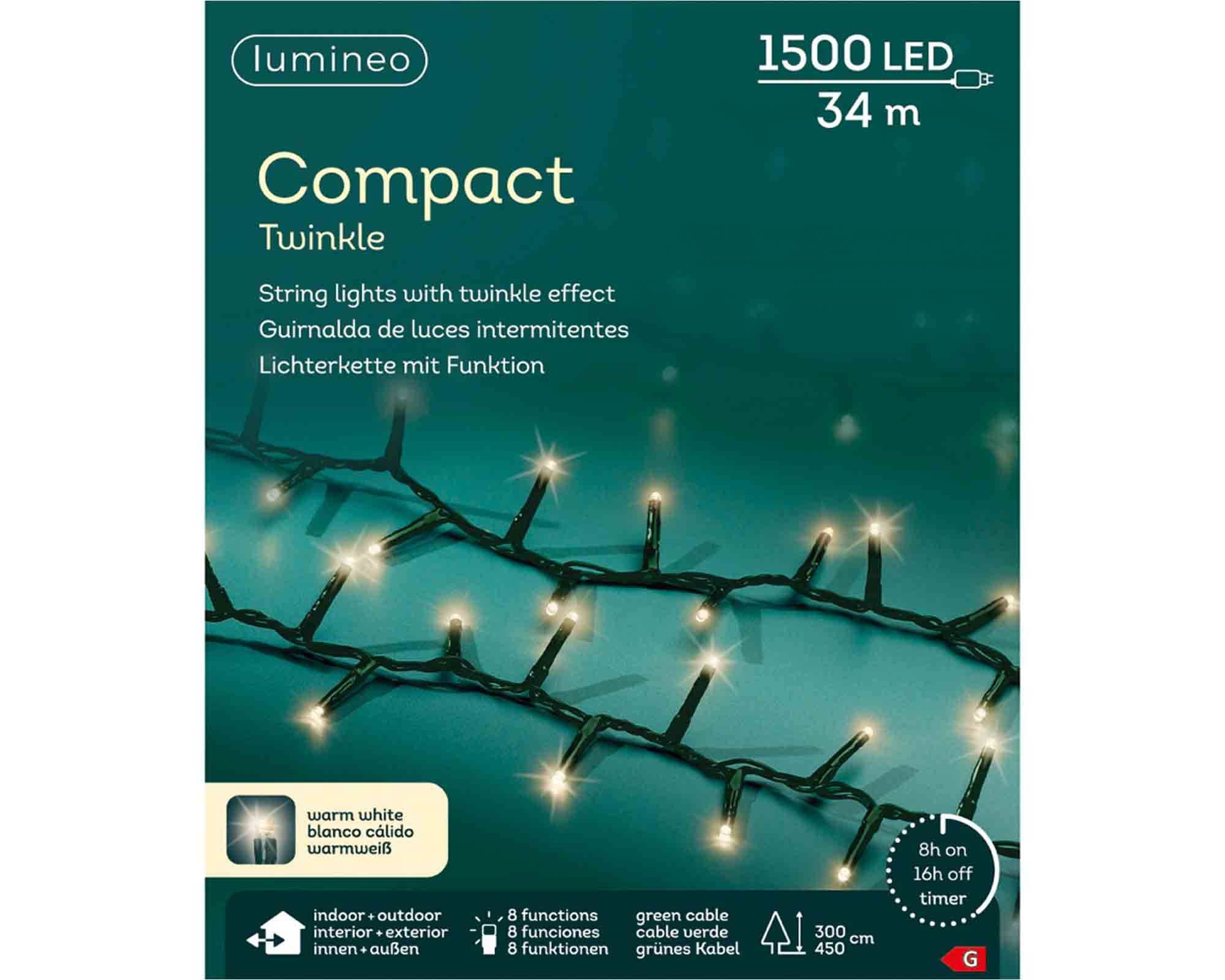 Catena Luci Effetto Scintillante con 8 Funzioni Cavo Verde e Bianco 3400cm in PVC