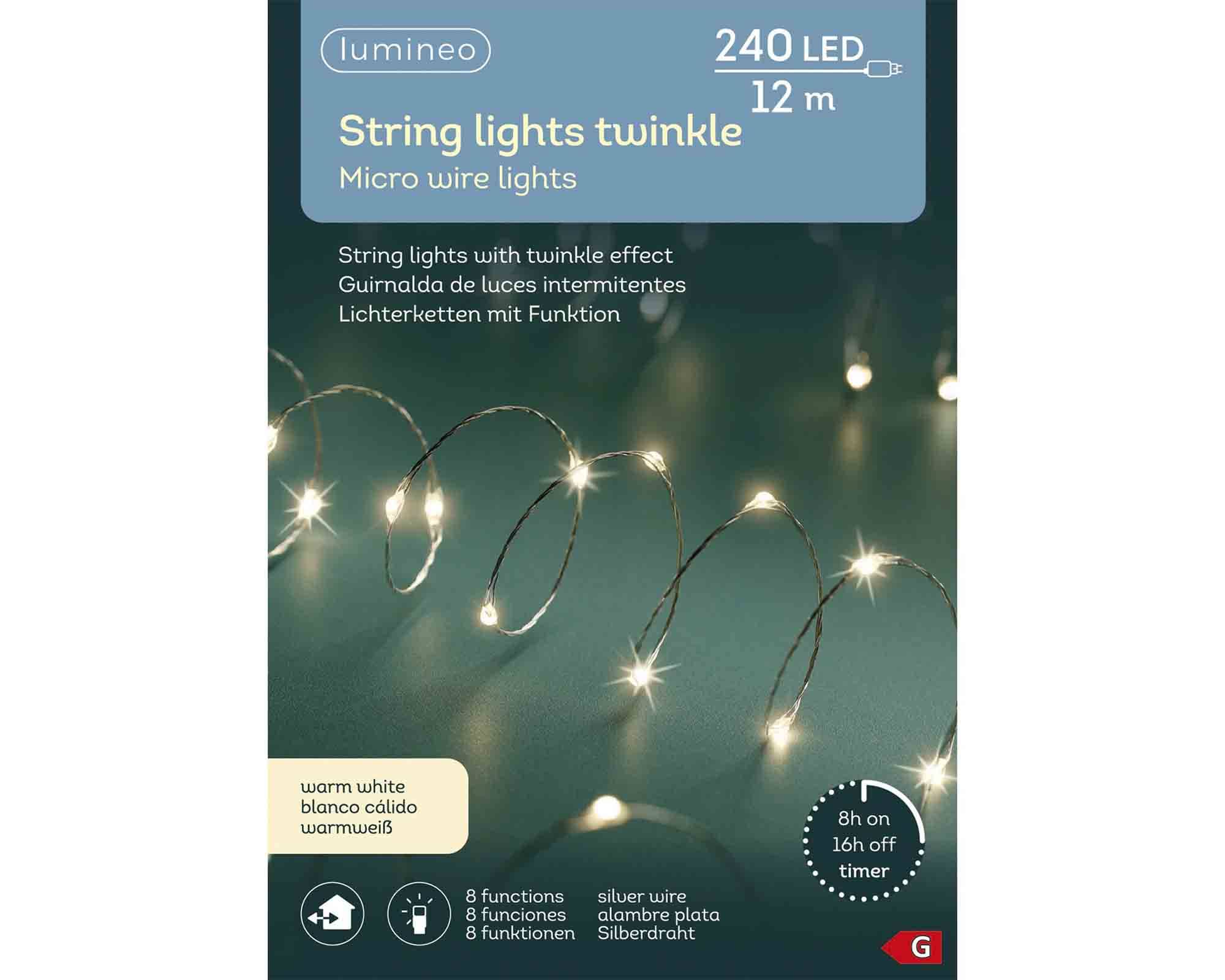 Catena Spirale Microled 240 Luci Cavo Bianco Luce Calda 1200cm in PVC