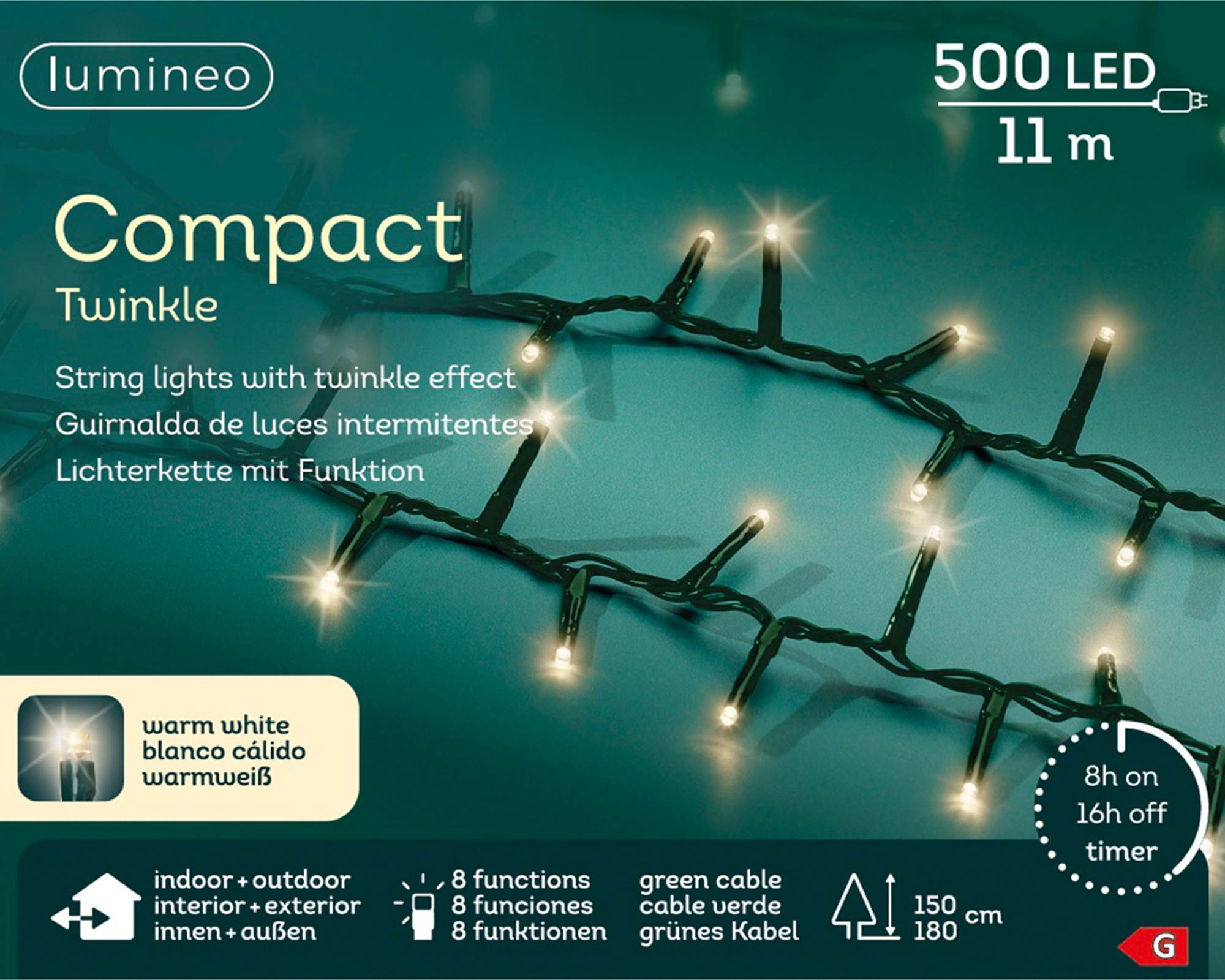 Luci Led Compatte 8 Funzioni Effetto Scintillante Verde e Bianco Caldo 1100cm in Pvc sono ideali per creare un’atmosfera accogliente e festiva. Con le loro 8 modalità di illuminazione, queste luci offrono un effetto scintillante che arricchisce ogni decorazione con un tocco di eleganza. Il mix di verde e bianco caldo conferisce un effetto luminoso e rilassante, perfetto per alberi di Natale, ghirlande e altri addobbi.