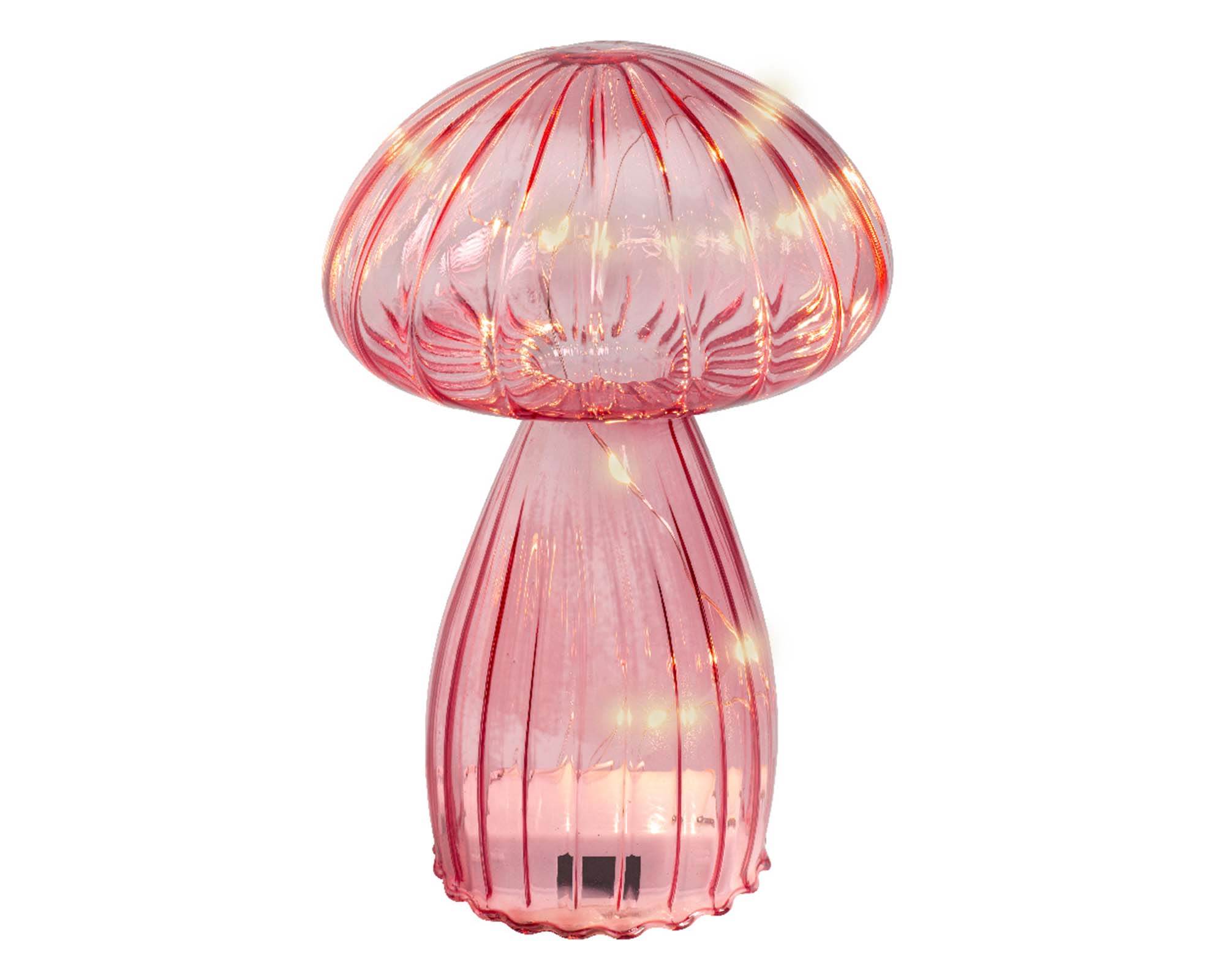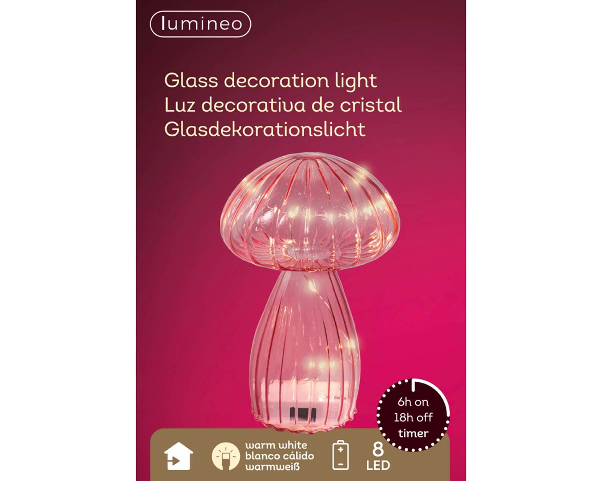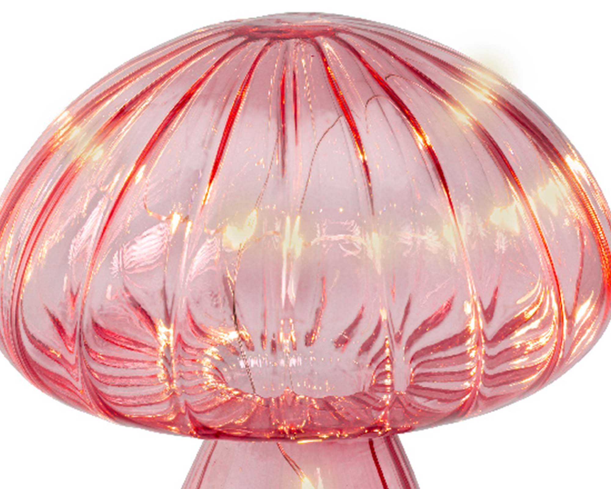Decorazione Fungo Rosa con Microled 16,5h in Vetro