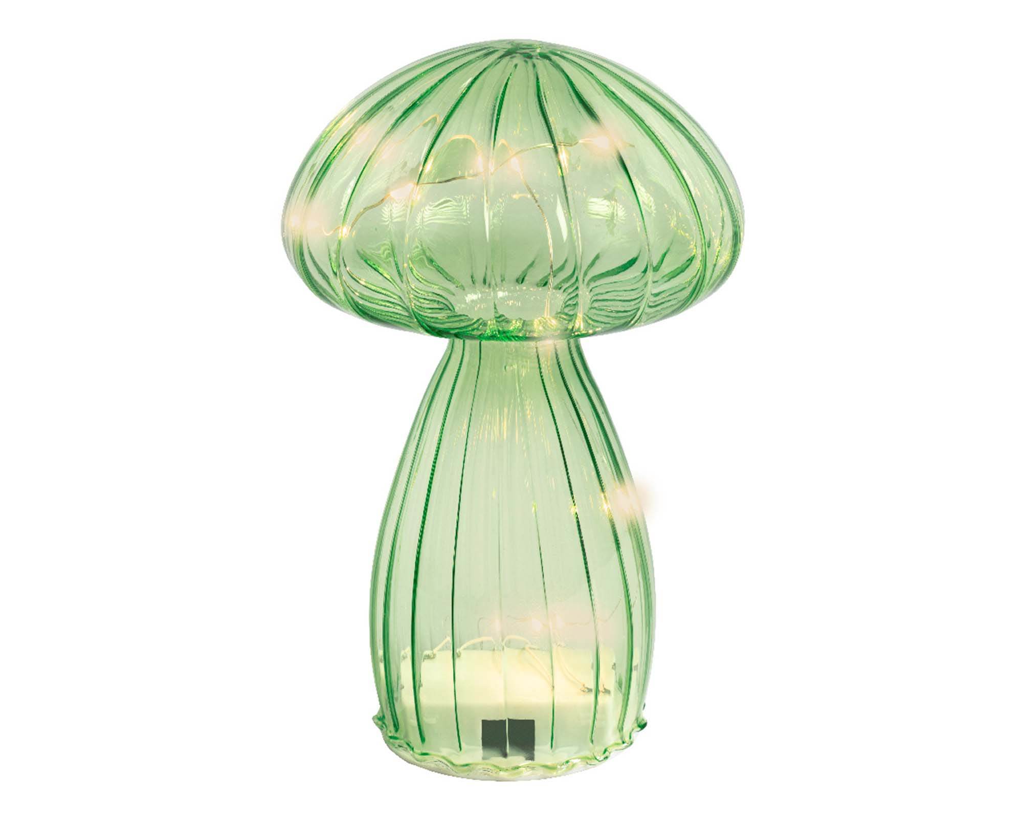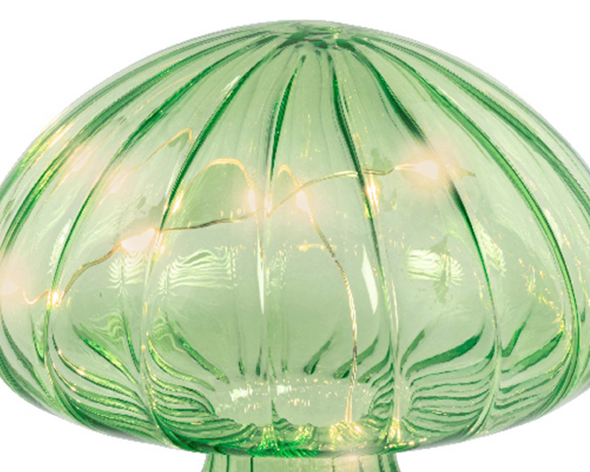 Decorazione Fungo Verde con Microled 16,5h in Vetro