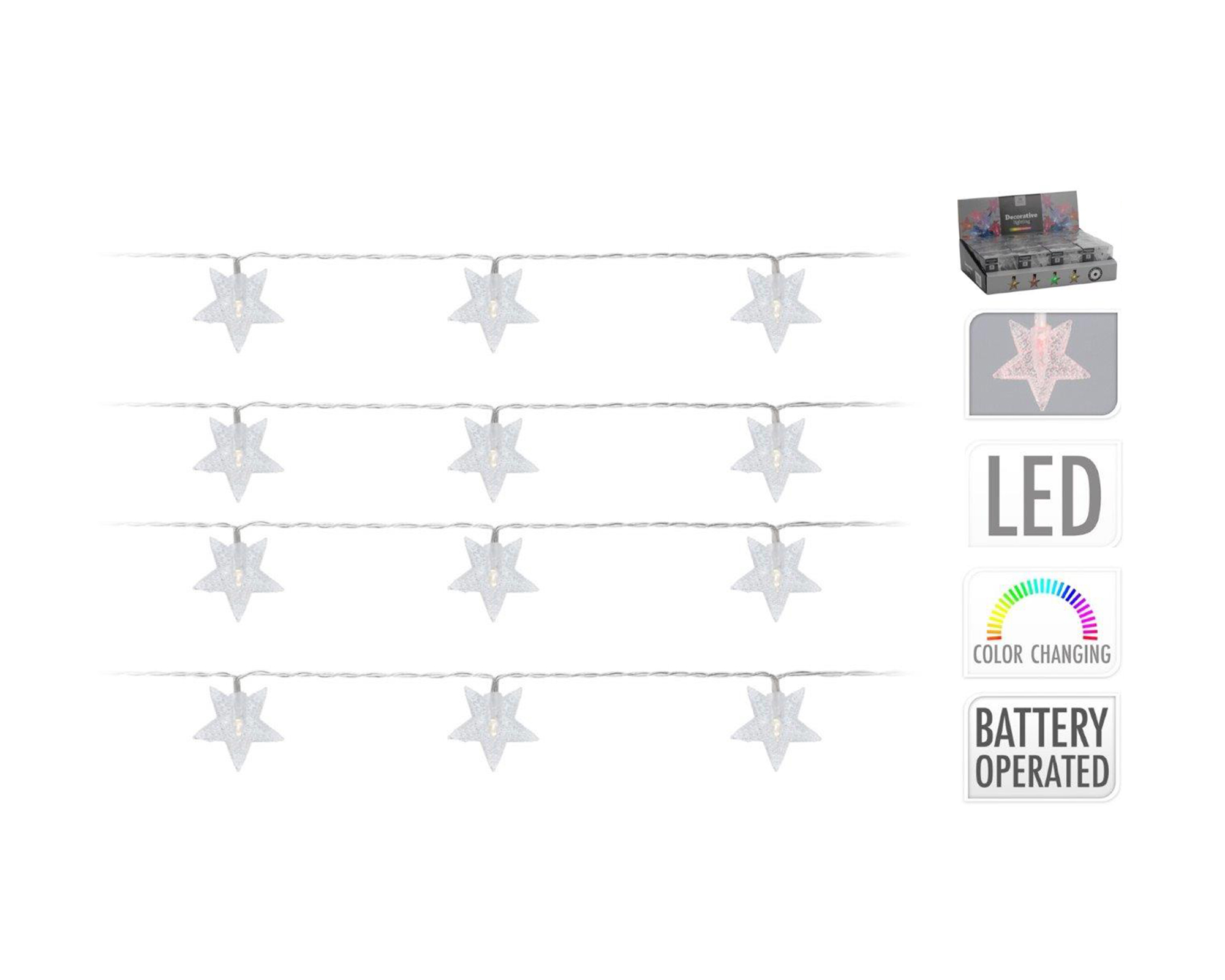 Catena di luci 10 led a forma di stelle multicolore